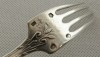 [0W441/Tárgyaló] Régi, 1937 előtti jelzett ezüst villa. A nyél gravírozott, lásd fotó. Jelzés: jobbra néző, 800-as finomságú Diana fő Mesterjegy: MS Hosszúság: 18.5 cm Súly: 0.044 kg