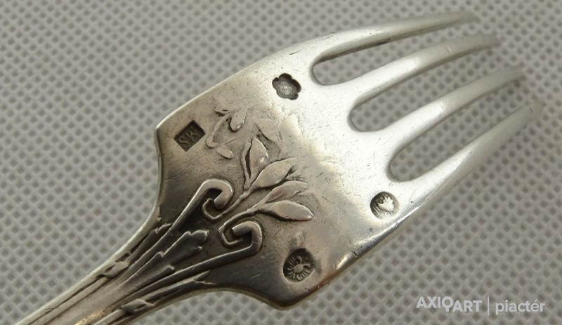 Régi, 1937 előtti jelzett ezüst villa. A nyél gravírozott, lásd fotó.