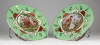 [1O682/X077] Régi, gyönyörű porcelán dísztányér, dísztál párban. Körben aranyozás és zöld szegély díszítés, közepében egy-egy négy alakos allegorikus jelenet. Alján zöld koronás jelzés: VICTORIA CZECHO-SLOVAKIA Szélesség: 16 cm Súly: 0.3 kg