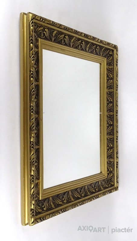 Régi, aranyozott keretben található falitükör. A tükör vakfolt mentes. Akasztási lehetőséggel rendelkezik.