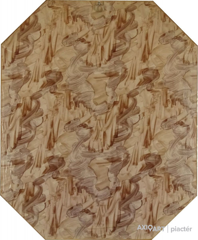 [1Y029/Z018] Olaj farost festmény, üveglap mögött, hibátlan képcsarnokos keretben. Hátoldalán Képcsarnok Vállalat papír címkéje: A művész neve: SCHÉNER MIHÁLY A kép címe: TÁJ Magasság: 66.5 cm Szélesség: 86 cm Súly: 6.54 kg Schéner Mihály festő, grafikus, szobrász, keramikus, bábtervező Medgyesegyháza, 1923-01-9 Elhalálozott: Budapest, 2009. május 11. Honlap: http://www.kormendigaleria.hu/kiadvany.html 1942-1947: Magyar Képzőművészeti Főiskola, tanára: Rudnay Gyula. 1978: Munkácsy-díj; 1984: érdemes művész; 1989: kiváló művész; 1995: Kossuth-díj. 1992-től a Magyar Művészeti Akadémia, 1993-tól a Széchenyi Irodalmi és Művészeti Akadémia tagja. 1956-ig tanított. 1982: Nagyatádi Faszobrász Alkotótelep, 1985: Nemzetközi Acélszobrász Alkotótelep, Dunaújváros. A stílusában felismerhető, mégis sokféle műtárgyat létrehozó ~ gazdag, állandóan alakuló életműve a folyton változó világban helyét kereső, az alkotói szabadságot megvalósító XX. századi képzőművész példázata lehetne. Magát expresszív-szürrealista alkotónak nevezi. Egyaránt dolgozik festékkel, textillel, fával, fémmel. Rajzol, szerkeszt, farag, épít, gyúr, varr és ragaszt, felhasználja a mézesbábok öntőformáit. Festő, rajzoló, textilszobor- és bábkészítő, fazekas, asztalos, esztergályos. Háromlépcsős folyamatban gondolkozik: rajzban tervez, majd fest, szobrot készít, “formába önt”, mindig a végső plasztikai megoldást keresi. Ami állandó és mégis játékosan változékony megjelenésű Schéner művészetében, az a gyermekkori emlékek által meghatározott népi mesterségek iránti tiszteletet kifejező motívumkincs, a tárgyi folklór formakészlete, amely már-már kézjegyként ismétlődik munkáin. Mitologikussá nőtt képzelete új lényeket teremt, pl: a Pigulát, amely disznótestű, emberfejű teremtmény. Schéner festményein a szürrealista motívumokat konstruktív szerkezetbe rendezi, a geometriát és az organikus természeti motívumokat egyaránt beépíti műveibe. A népi, népművészeti formakincsből merített lovas huszárok, betyárok, szegénylegények cifra szűr mentéje, piros csákója, fekete csizmája, az önálló életet élő zsinórdíszek és mézeskalács bábok, a kiskocsik a gyermekkori vásárok, búcsúk színes forgatagába vezet. A primér motívumokat aztán felváltják a vastagon felhordott felületbe karcolt jelek, vonalhálózatok, amelyek a játszó gyermek homokba rajzolt ábráit, a pásztorember fába vésett üzeneteit, az ősember barlang falába rótt mágikus jeleneteit idézik meg. A művész pillanatnyi érdeklődésének megfelelően a színek búvópatakként tűnnek el és jelennek meg ismét. A 60-as években leginkább a formákkal való játék érdekelte, a festmények felülete egyre gazdagodott: a táblaképek felületén applikációk jelentek meg, vagy lemállasztott rétegek hagyták maguk után hiányukat, motívumok nélküli ősformák, archetipikus képzetek bukkantak fel művészetében. A véletlenszerűnek látszó rétegekkel való játék azonban tudatos komponálás eredménye, amely később nyilvánvaló ritmusnak és formai szerkesztettségnek adja át a helyét, mint a Törvénytáblák c. sorozaton. A különböző művészi kifejezési formák egymásra termékenyítő hatással vannak, át- meg áthatják egymást. Textilszobrai, amelyekkel új műfajt teremtett, ugyanazzal az automatikus, expresszív-szürrealista módszerrel készülnek, mint festményei. A hagyományosan a népművészetben alkalmazott anyag, a filc lehetőséget ad a népi formakincs felelevenítésére, amely azonban a művész különös szürrealista átiratában jelenik meg. A szívekkel kivarrt, zsinórdíszes Posztókotlós c. művén mézesbábok lógnak, hátán huszárok lovagolnak. Egész sor textilből készült kéz-plasztikát alkot, amelyeket az ujjakra rávarrt díszekkel öltöztet, személyesít meg. A színes-különös világból aztán ~ újra puritán képi és formai rendbe juttatja el a nézőt, majd nemsokára tépett, gyűrt, vágott, csorgatott, repedezni hagyott szenvedélyesen vonagló képi felületeket hagy hátra. Schéner készített apró gyermekjátékokat, térstruktúra-tereket, mászókákat is. A magyar népi formák mellett szürreális játékaiban gyakran alkalmaz görög mitológiai alakokat, “elkentaurosodott” lovakat, Gorgó-fejeket, sellőket, hárpiákat, Pán-ábrázolásokat. Schéner nemcsak saját művészetéről publikál, hanem művésztársairól is számos írása jelenik meg, elsősorban az Új Auróra c. folyóiratban, amelynek egy ideig főmunkatársa volt. Irodalom kiállítása, Magyar Építőművészet, 1962/4. Húsz év után, Művészet, 1965/4. BOZÓKY M.: ~, Tiszatáj, 1968/5. PERNECZKY G.: Nincs uborkaszezon, Élet és Irodalom, 1969. augusztus 8. BARÁNSZKY-JÓB L.: ~, Művészet, 1969/9. LÁSZLÓ GY.: ~ kaposvári kiállítása, Jelenkor, 1969/4. MAJOR M.: Pásztorok, betyárok, huszárok - kezek, Tükör, 1970. szeptember 15. FRANK J.: Bemutatjuk ~t, Élet és Irodalom, 1972. május 6. ról kiállítása ürügyén, Képzőművészeti Almanach, Budapest, 1972 Sötétkék kokasok, Élet és Irodalom, 1973. szeptember 9. MAJOR M.: ~ játékai, Élet és Irodalom, 1974. július 27. BARTA J.: Egy különös művész, Alföld, 1974/6. VADAS J.: Szárnykészítők, Élet és Irodalom, 1975. október 4. JUHÁSZ F.: A halál ellen játszani, Élet és Irodalom, 1975. május 17. PAP G.: Kincsek és műkincsek, Művészet, 1975/6. P. SZŰCS J.: Az utak kettéválnak, Művészet, 1978/3. Békési művészet, Művészet, 1978/7. SZAMOSI F.: ~ [kismonográfia], Budapest, 1978 VADAS J.: Játék a játékkal, Élet és Irodalom, 1979. augusztus 18. NÉMETH L.: ~ műveiről, Művészet, 1979/4. MIKLÓS P.: Mit akar ez a múzeum?, Művésze
