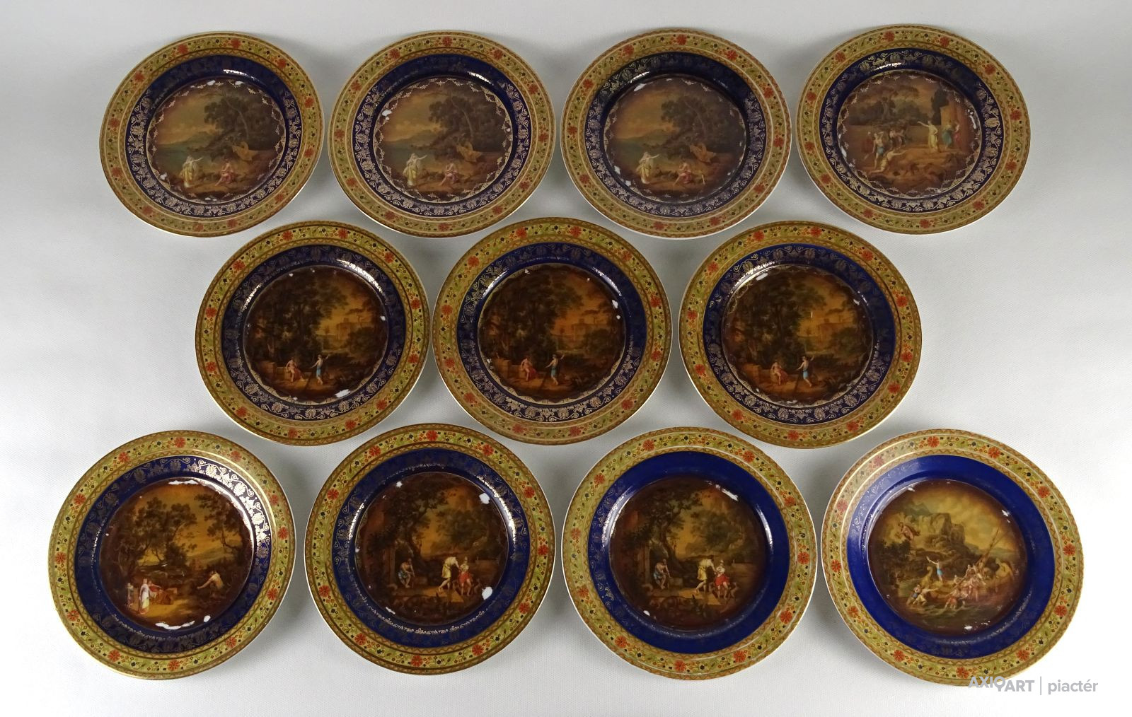 Régi aranyozott Schlaggenwald porcelán tányérkészlet 11 darab