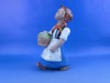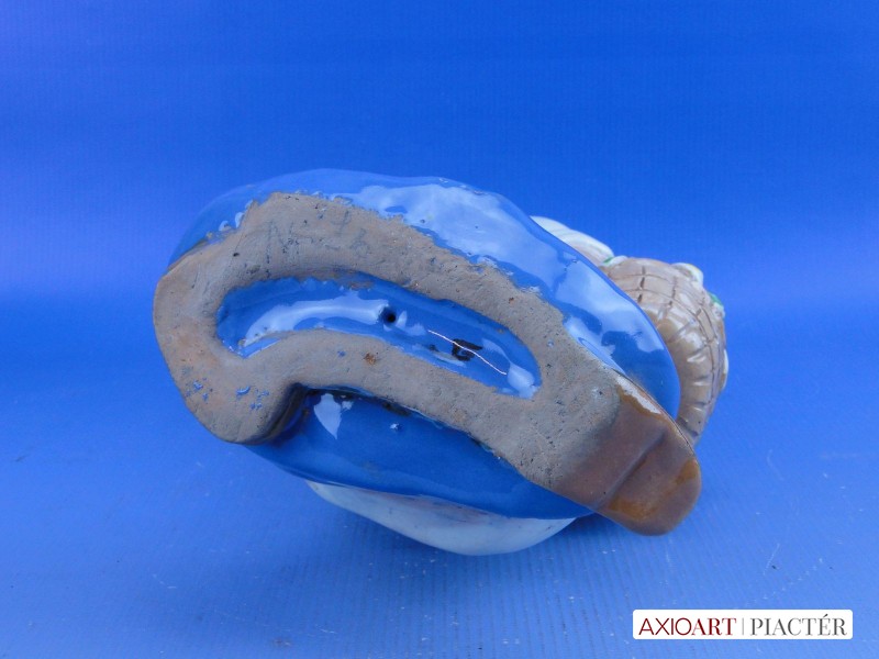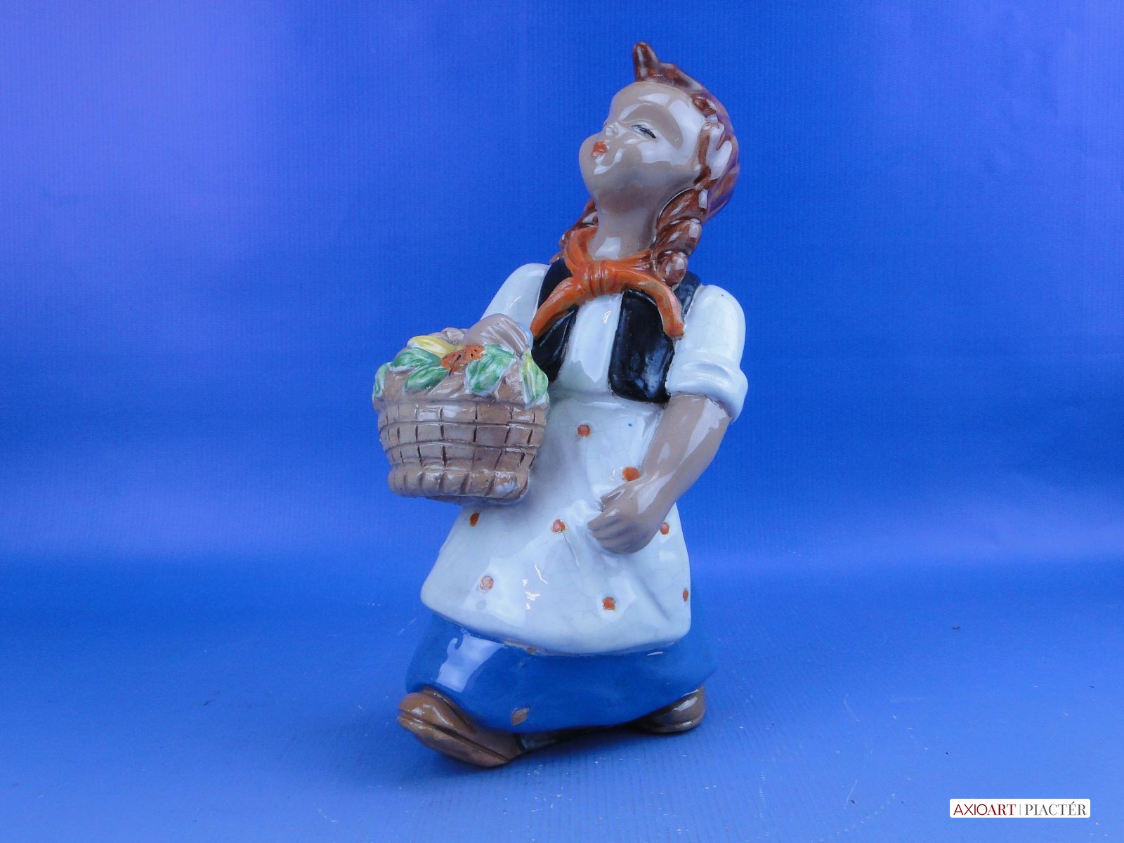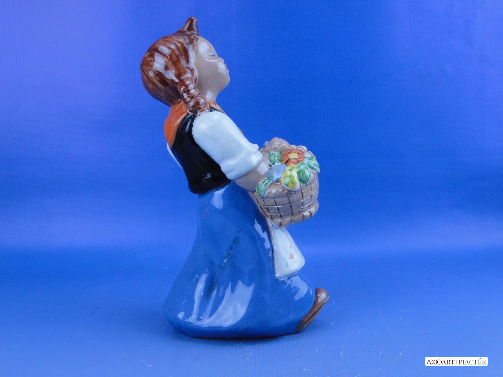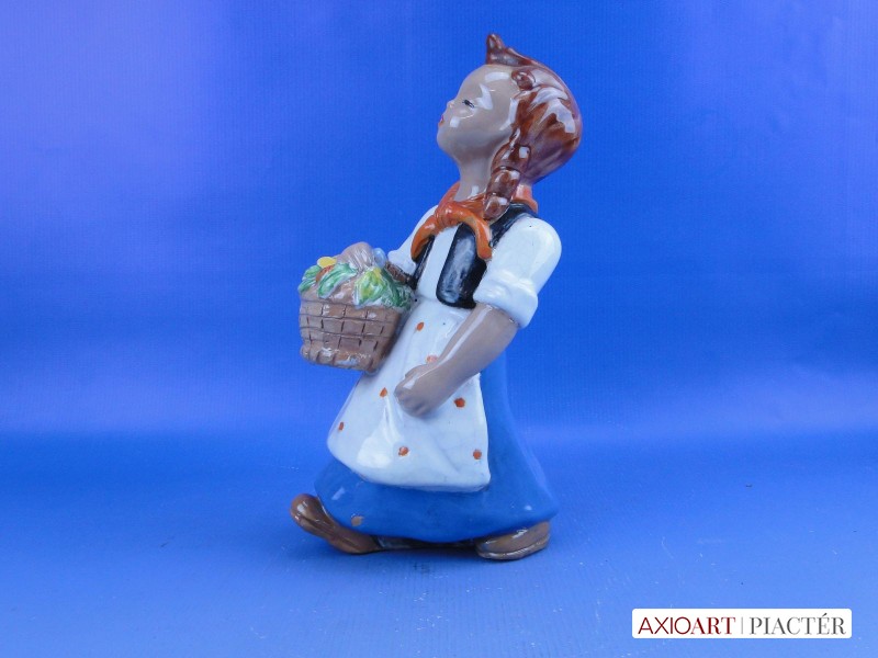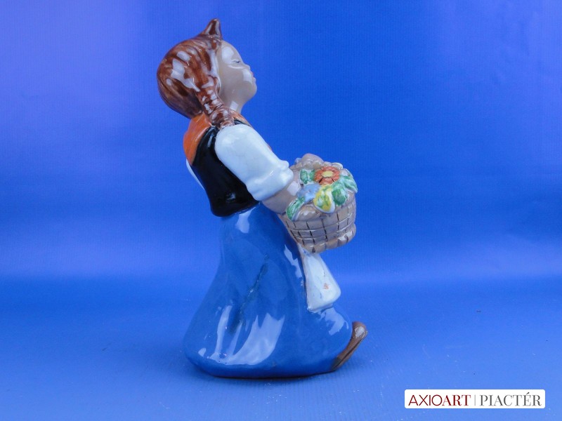 Jelzetlen Komlós forma, hibátlan állapotú, 40-es évekbeli mázas kerámia, virágkosaras kislány.