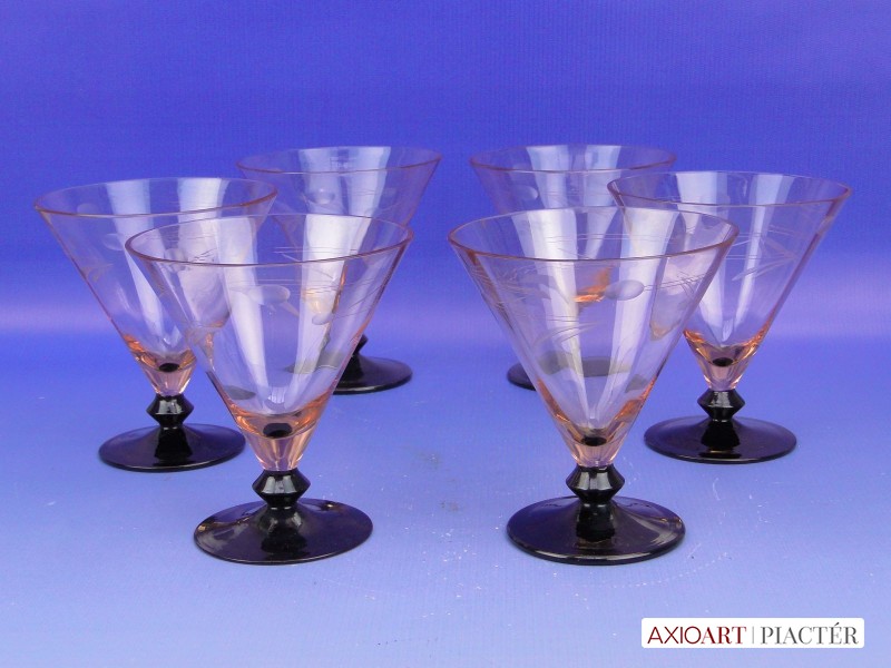 Régi art deco likőrös üvegpohár készlet