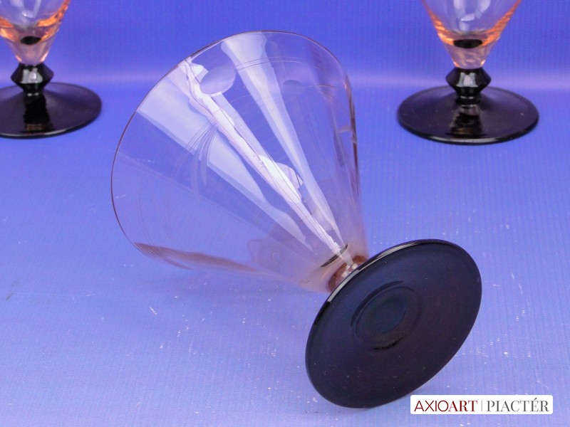 Fújt, csiszolt, 30-as évekbeli pohárkészlet, rendkívül ritka, jó állapotban megmaradt darabok.