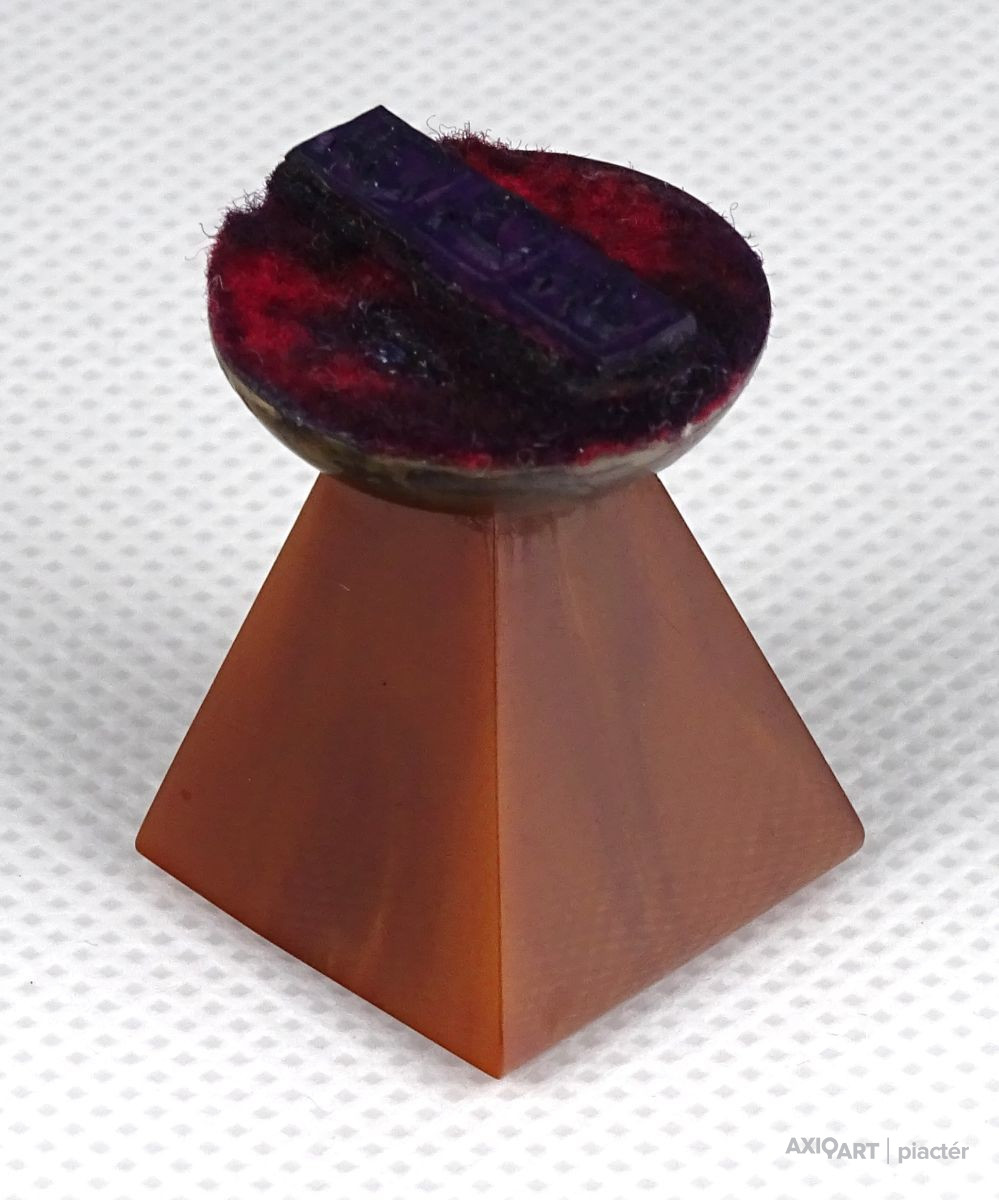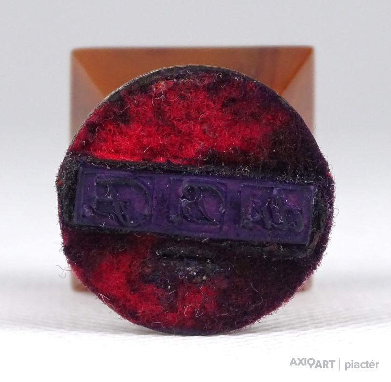 Nagyon régi szép állapotú kis méretű monogramos art deco pecsét nyomó. Fogó része borostyán szerű anyagból készült, feje réz.