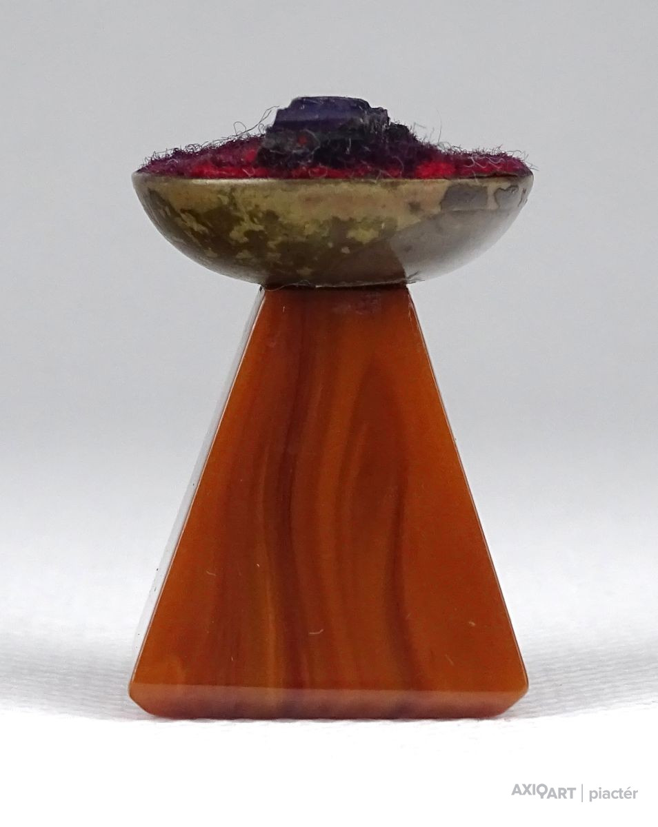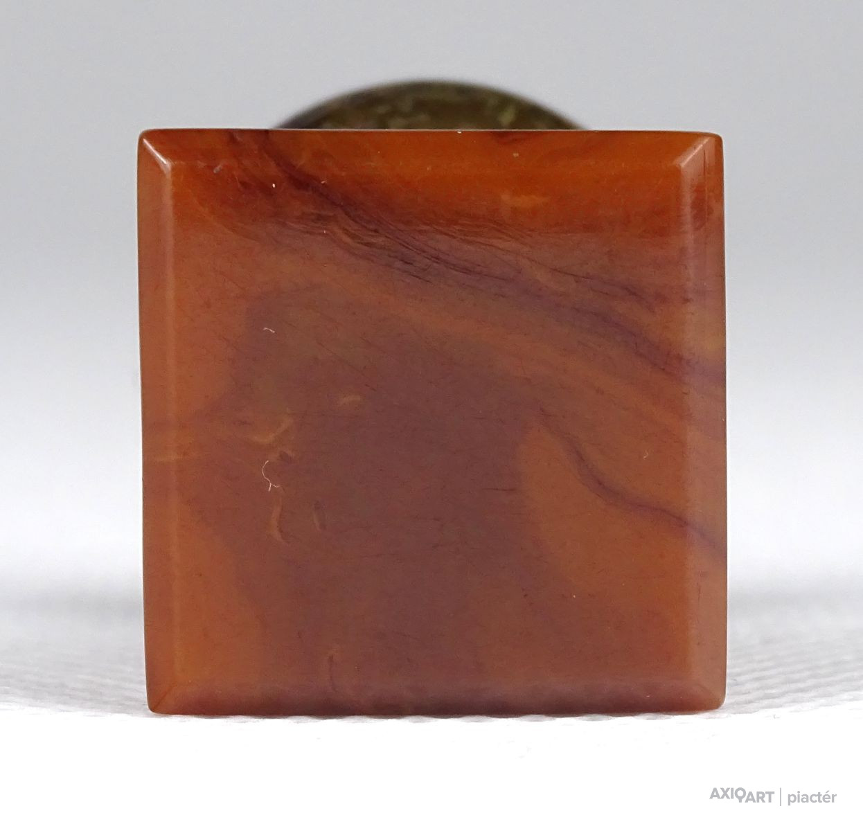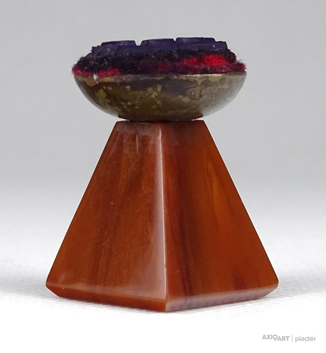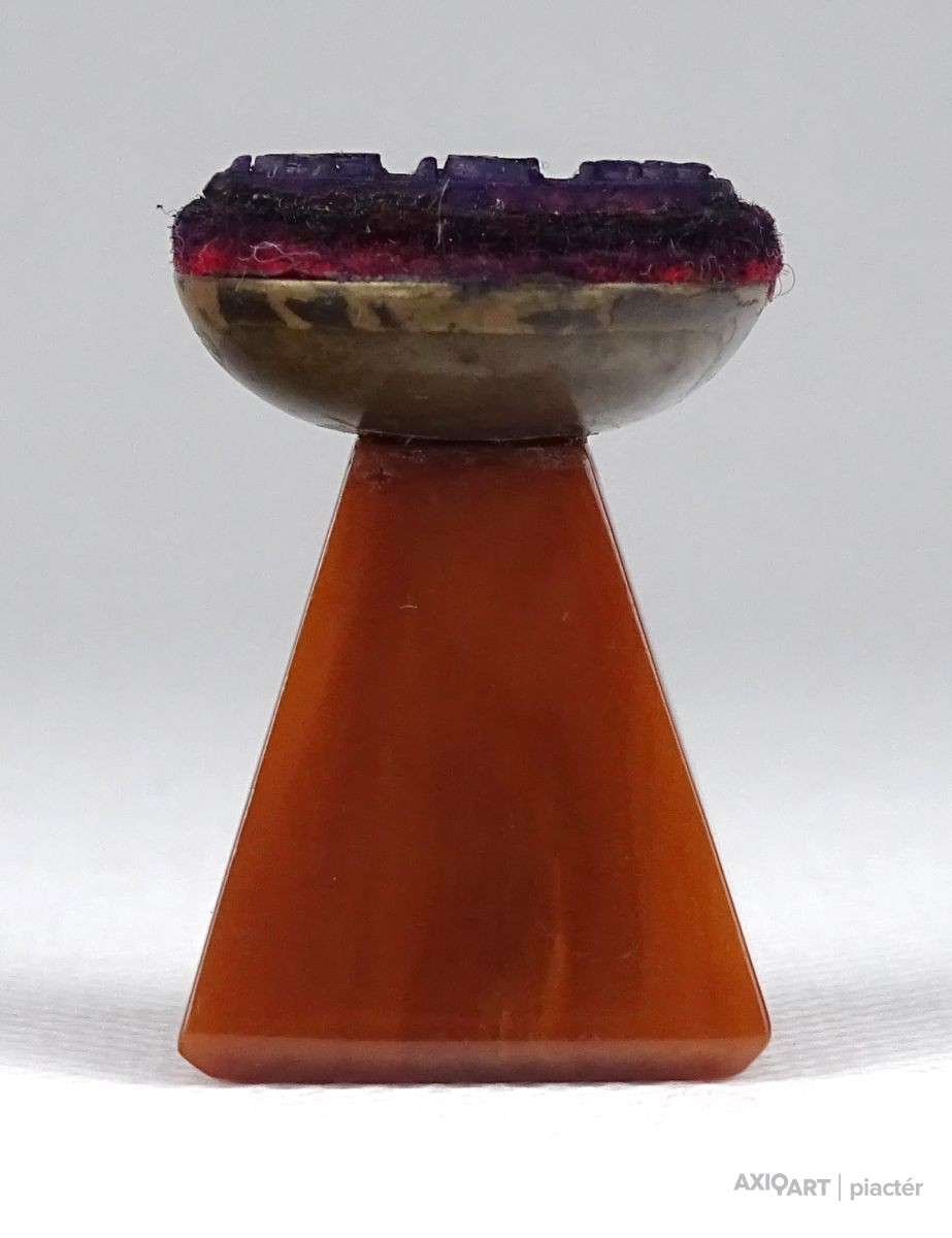[1I140/X024/5] Nagyon régi szép állapotú kis méretű monogramos art deco pecsét nyomó. Fogó része borostyán szerű anyagból készült, feje réz. Felületén iniciálés monogram: DR. B. F. Magasság: 3.5 cm Szélesség: 2.5 cm Súly: 0.03 kg