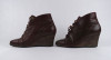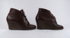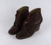 [1T491/Y017] Magas sarokkal rendelkező, háború előtti barna színű, félmagas szárú női bőr cipő. Gyűjteményes darab. Magasság: 18 cm Hosszúság: 23.5 cm Súly: 0.64 kg