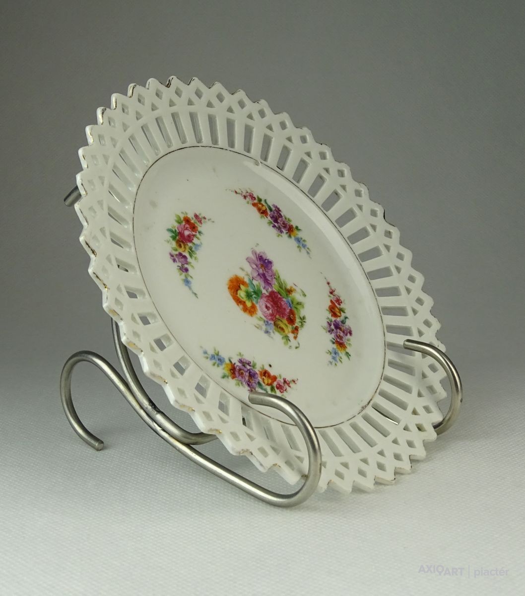 Régi, hibátlan állapotú, áttört, virág díszes porcelán tányér, dísztányér.