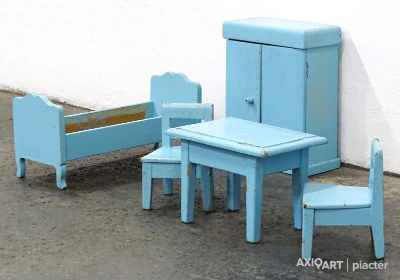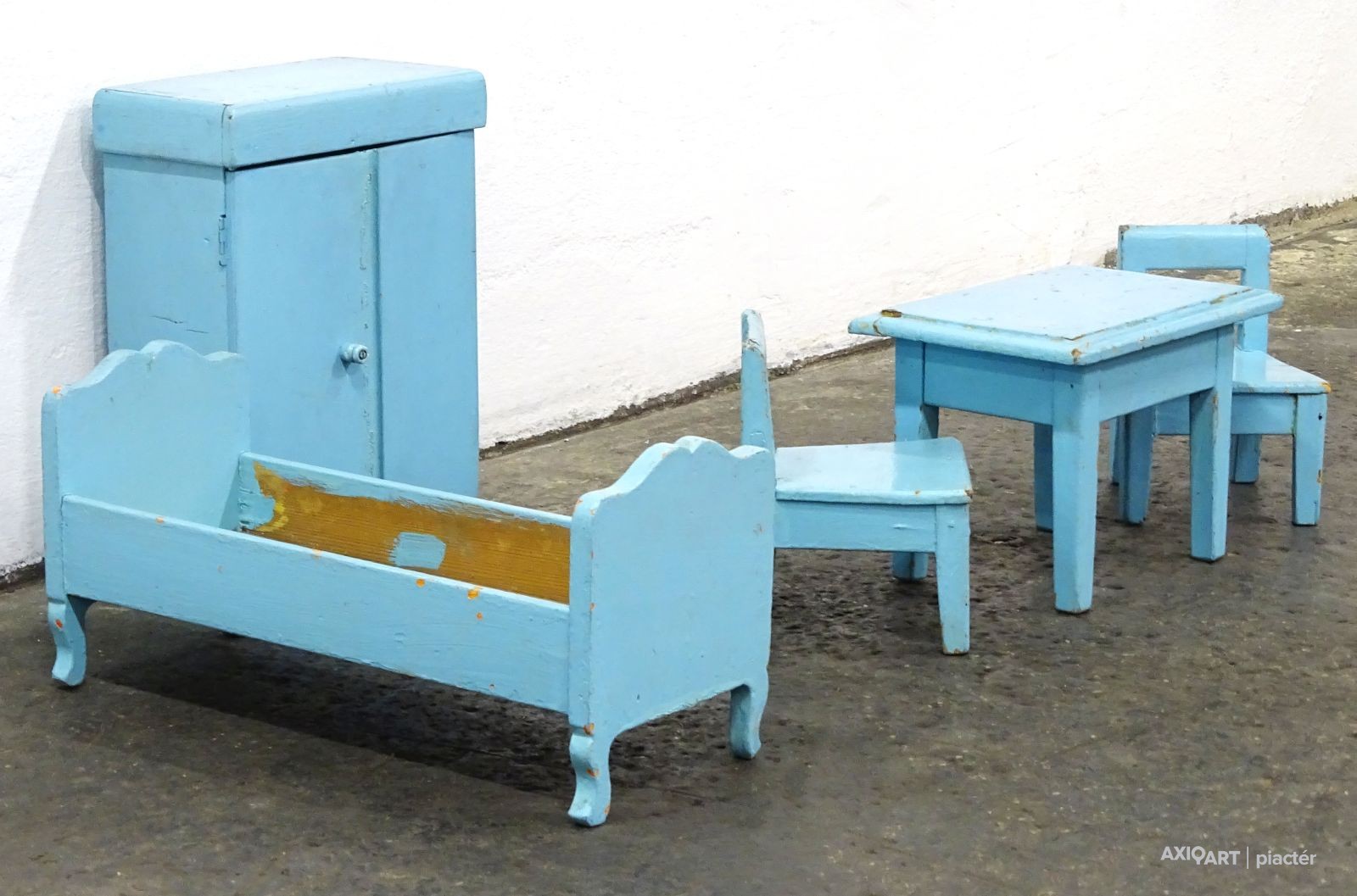 Nagyon régi, kék színű babaszoba, baba bútor berendezés: