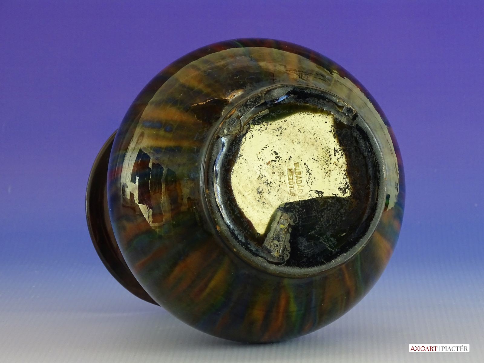 [0I029/UZ-N] Régi, hibátlan állapotú, jelzett mázas kerámia váza. Alján mélynyomott jelzés: BADÁR B. MEZŐTÚR A váza pereme profi restaurátor által javított. Magasság: 17 cm Szélesség: 14.5 cm Súly: 0.675 kg