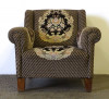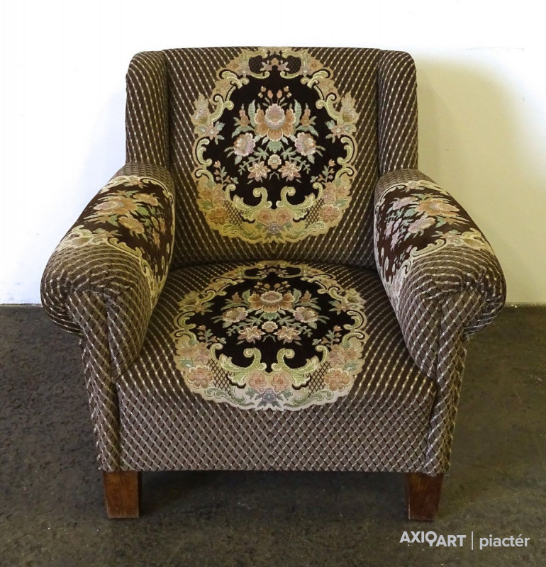 [1H328/KCS] Régi szép állapotú kárpitozott fotel. Ülőfelülete kényelmes epedarugós. Kényelmes régi fotel. Magasság: 85 cm Szélesség: 92 cm