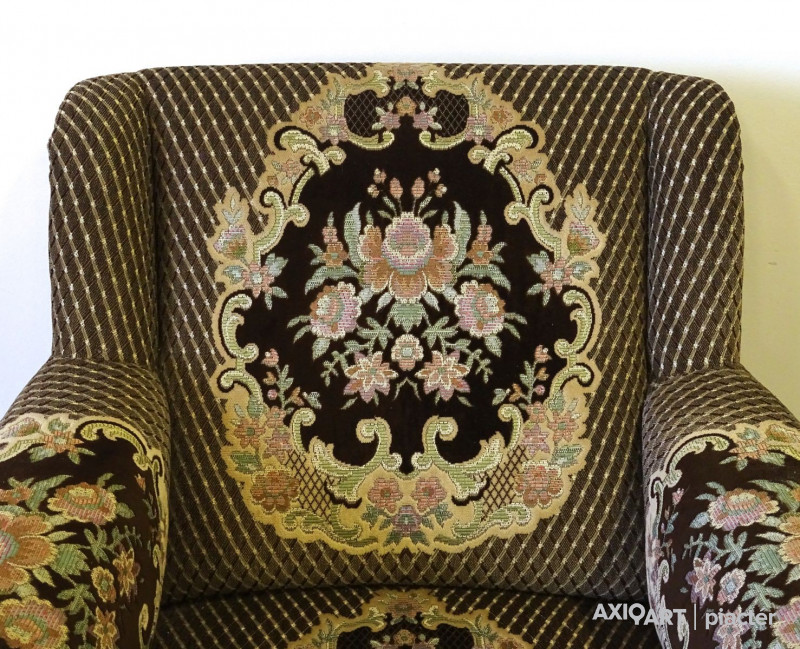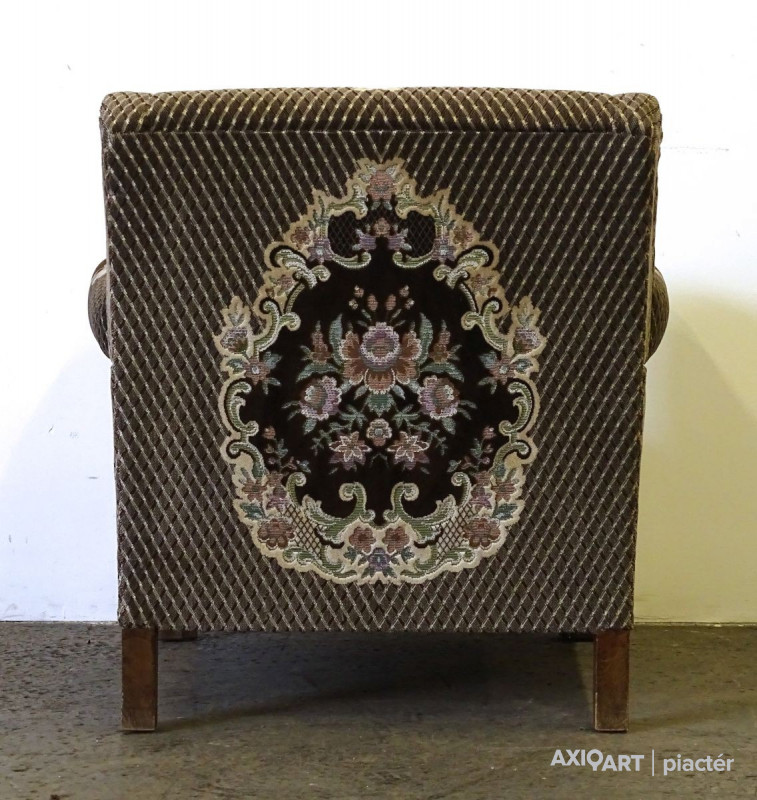 Régi szép állapotú kárpitozott fotel. Ülőfelülete kényelmes epedarugós. Kényelmes régi fotel.