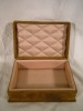 Hasított marhabőr selyem szerű anyaggal bélelt ékszertartó doboz, ládika.