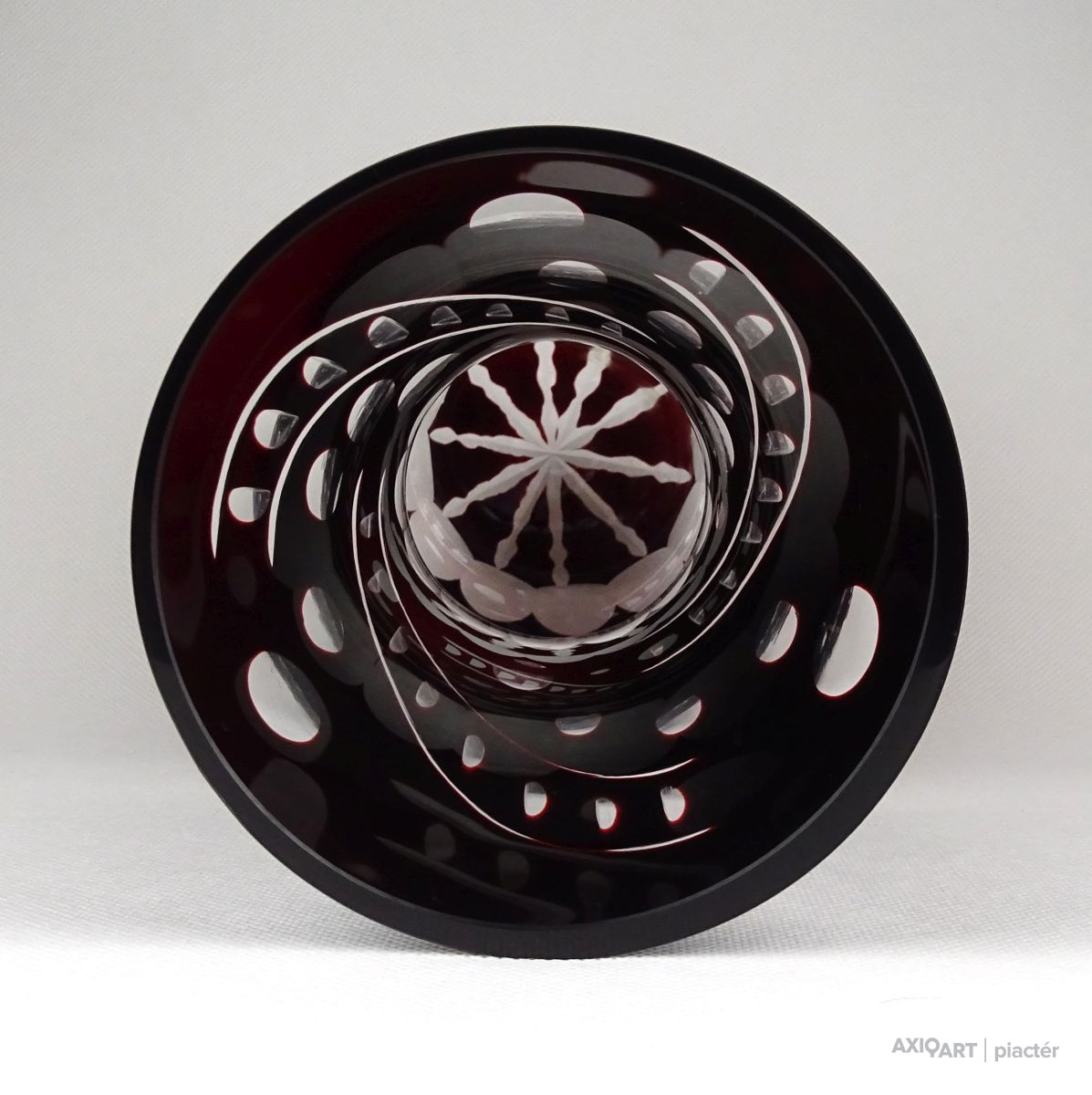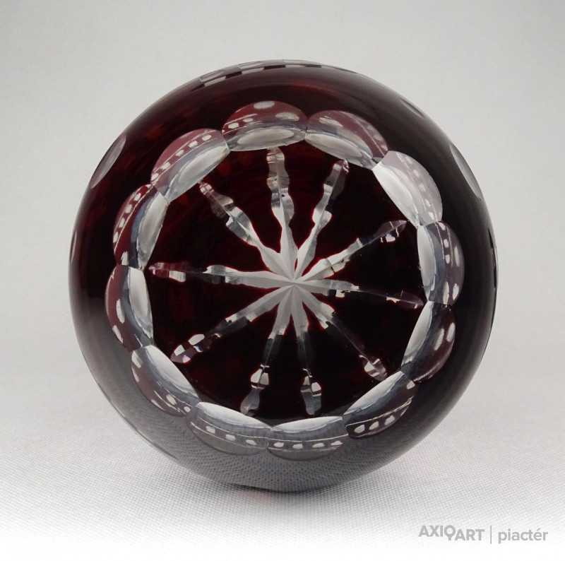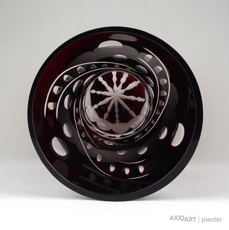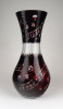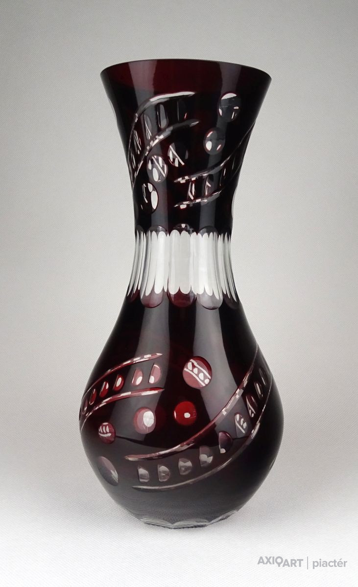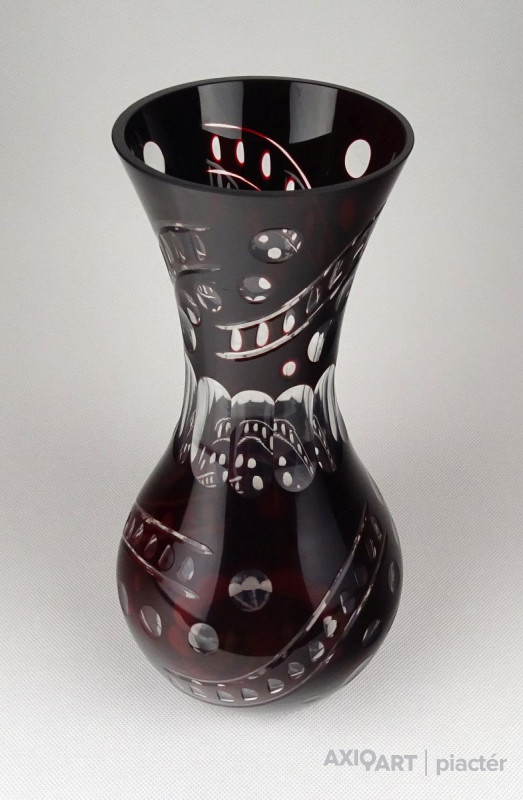 Hibátlan állapotú, nagy méretű, bordóra színezett, csiszolt, gazdagon díszített kristály váza.