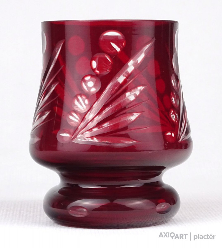 Régi bordó csiszolt üveg likőrös pohár készlet 6 darab