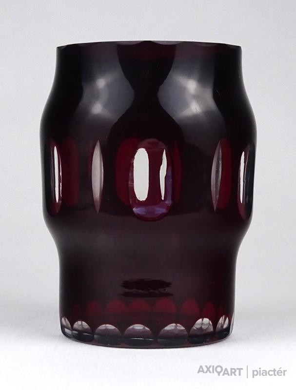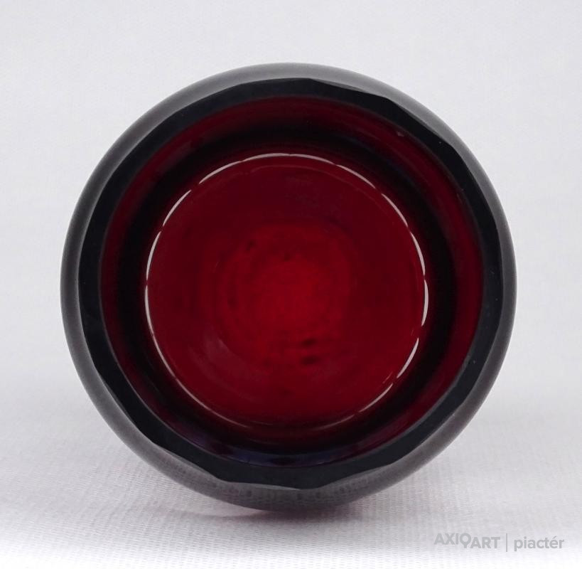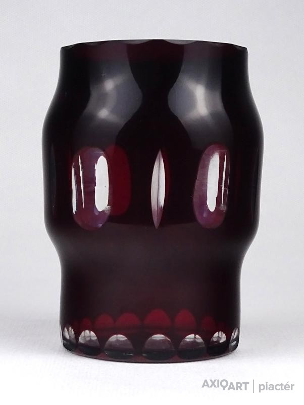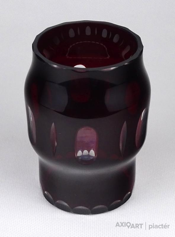 Régi bordóra színezett csiszolt üveg váza 11 cm