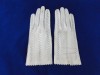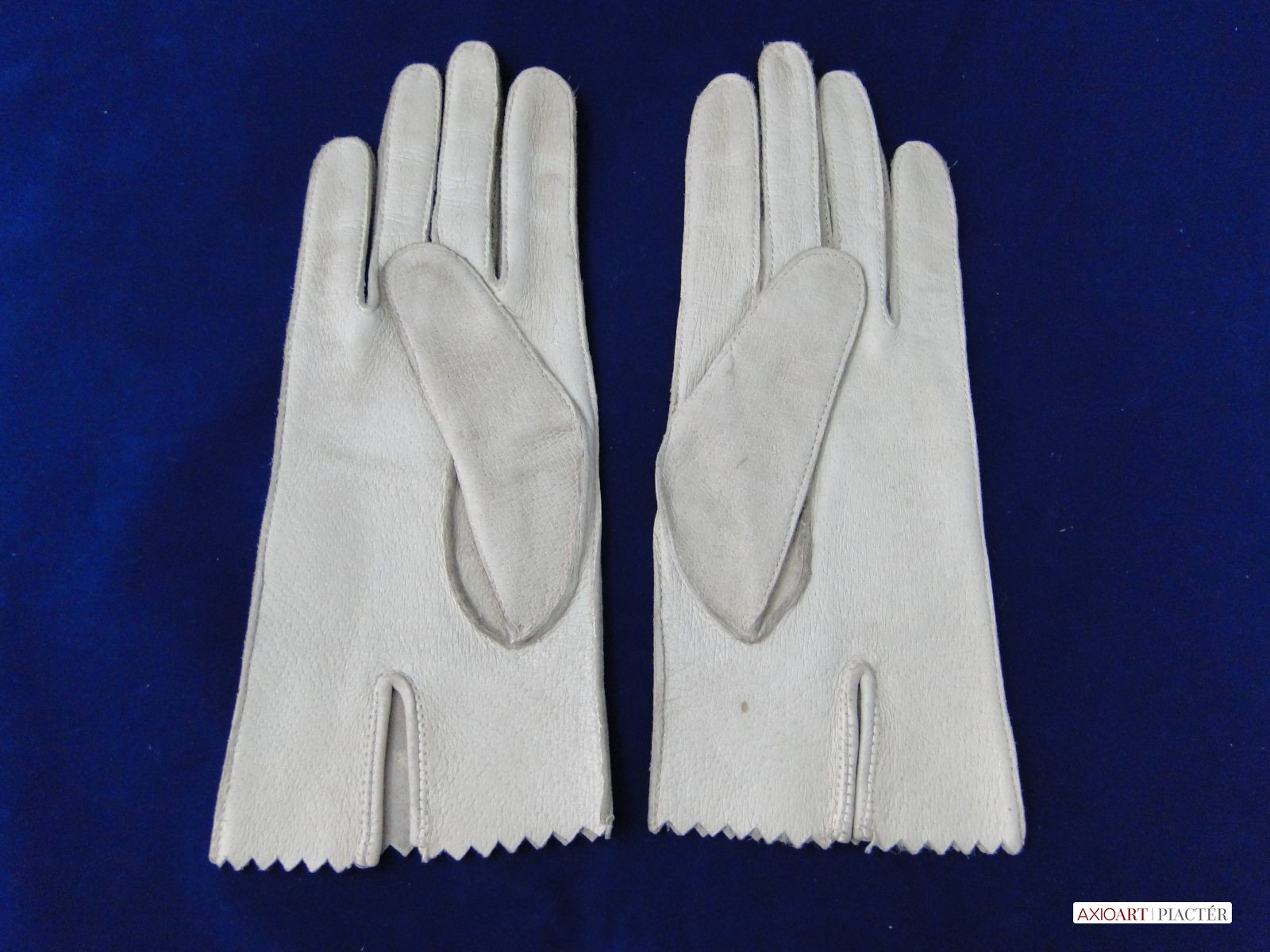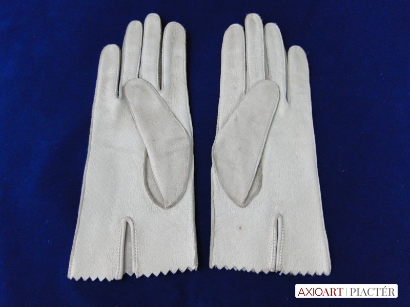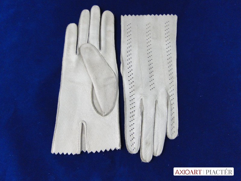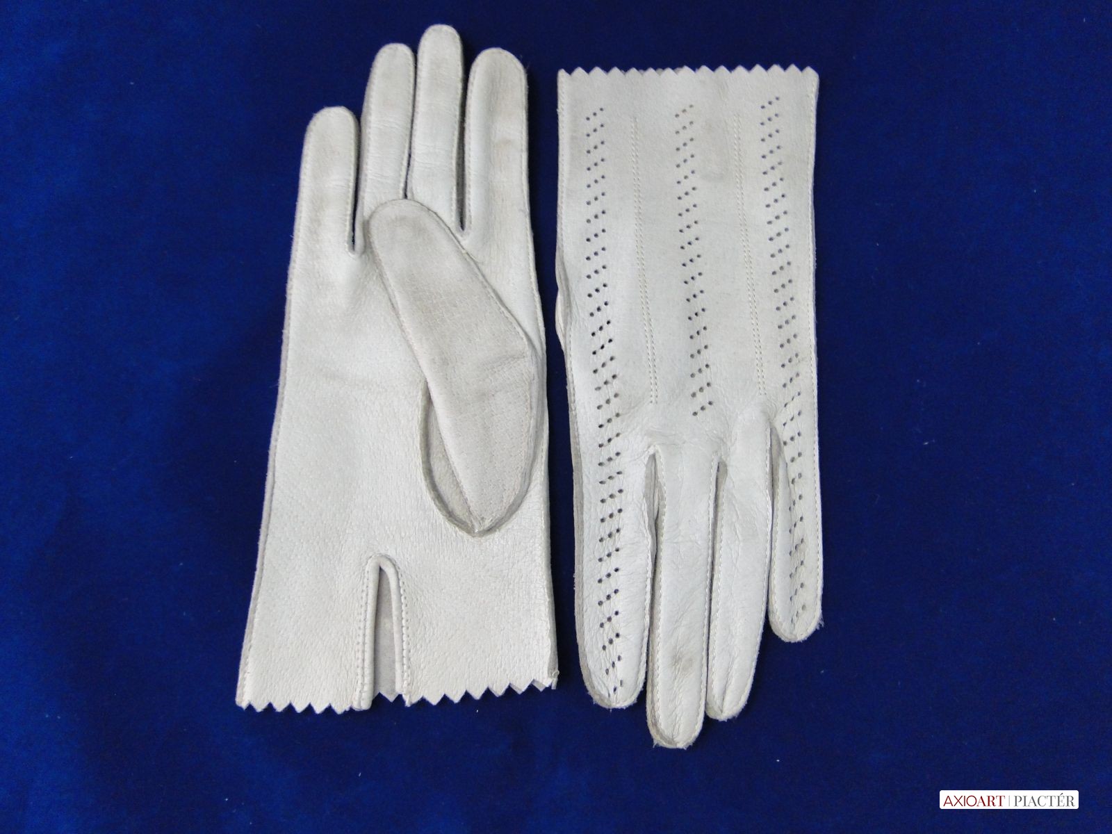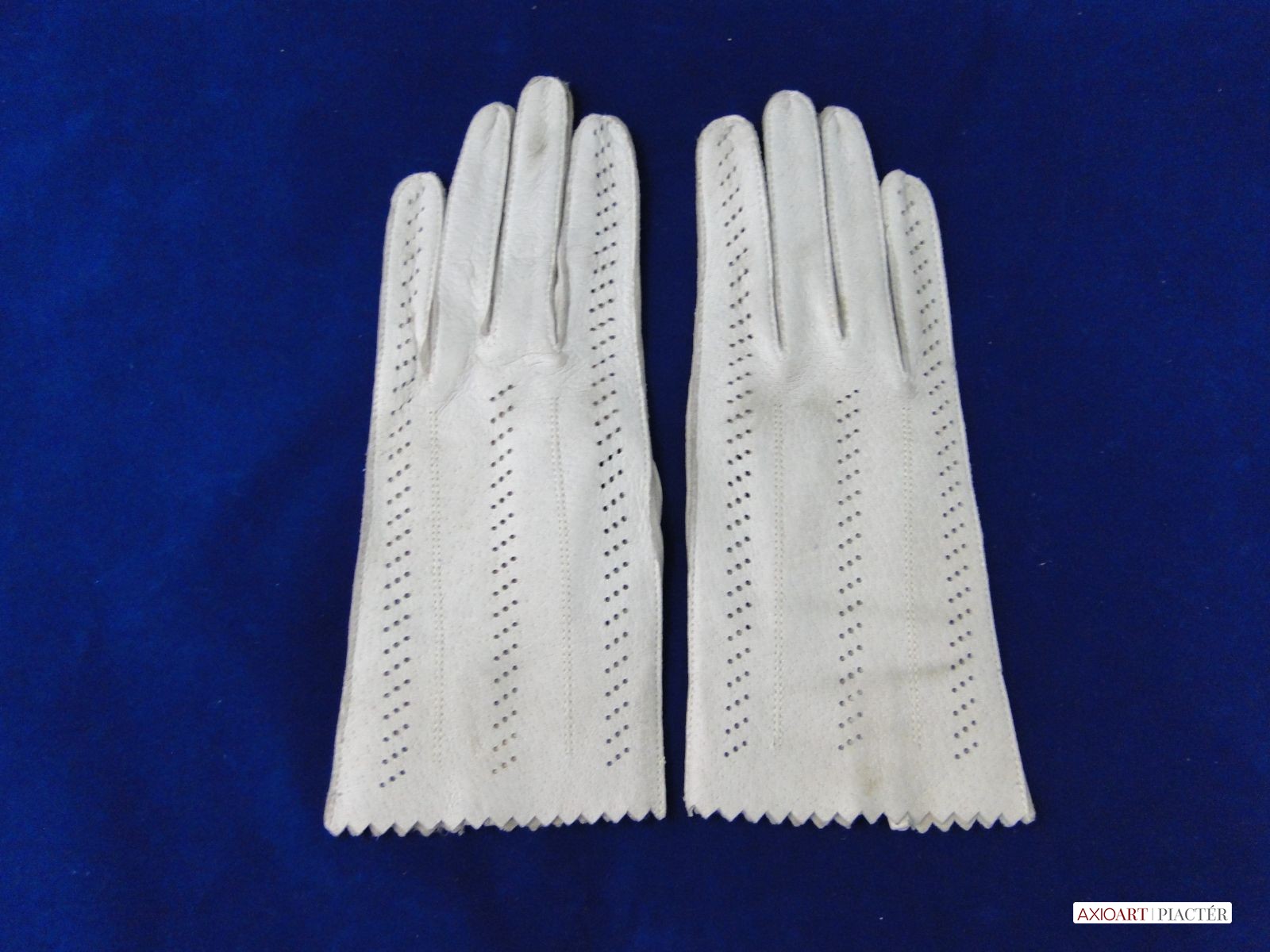 Szép állapotú kisméretű női bőrkesztyű világos, lyukacsos.