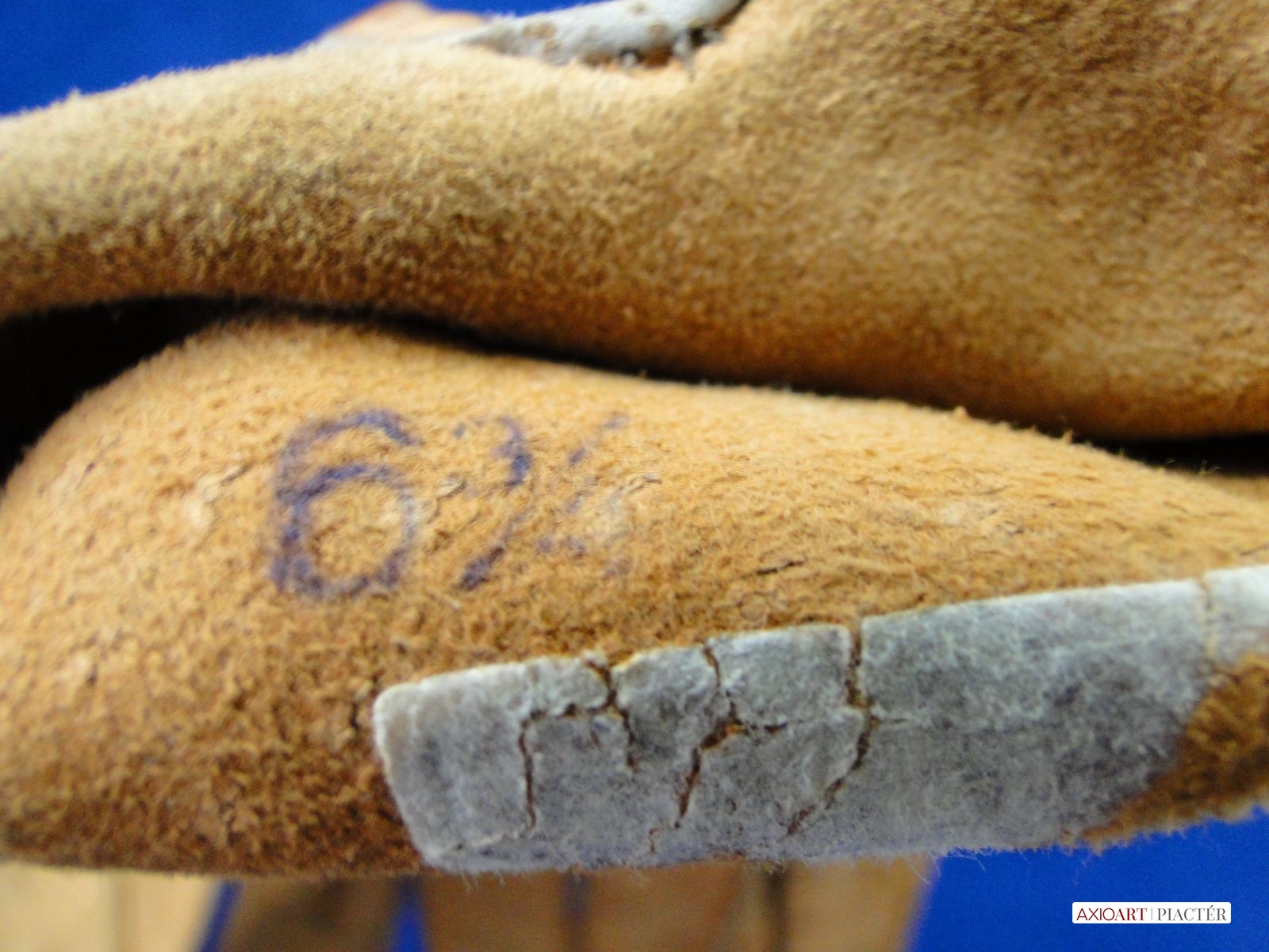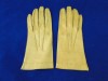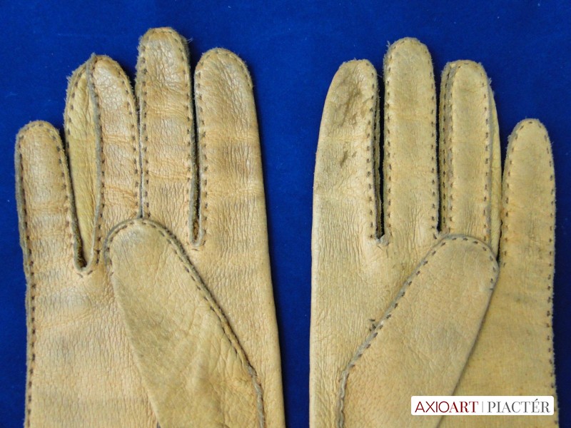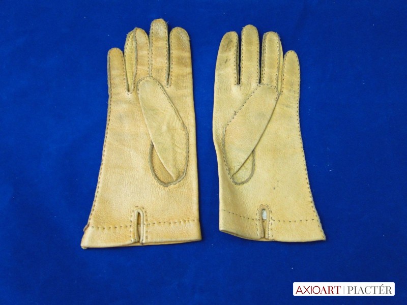 Szép állapotú kisméretű női bőrkesztyű világos barna igényes varrással díszített.