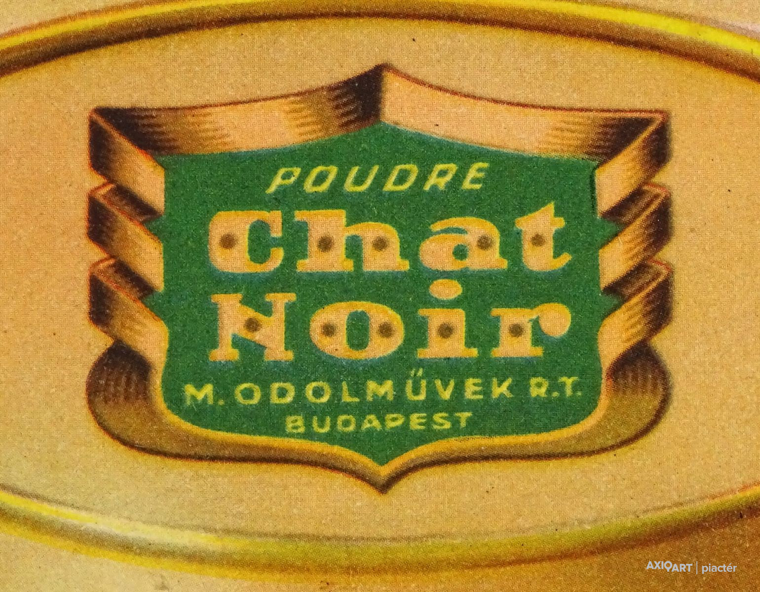 Régi Chat Noir púder reklám kartonra nyomtatva. Korabeli reklám plakát, reklám relikvia.