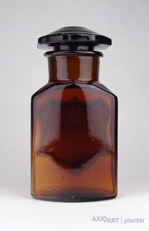 Régi, barna patika üveg, gyógyszerészeti tároló üveg.