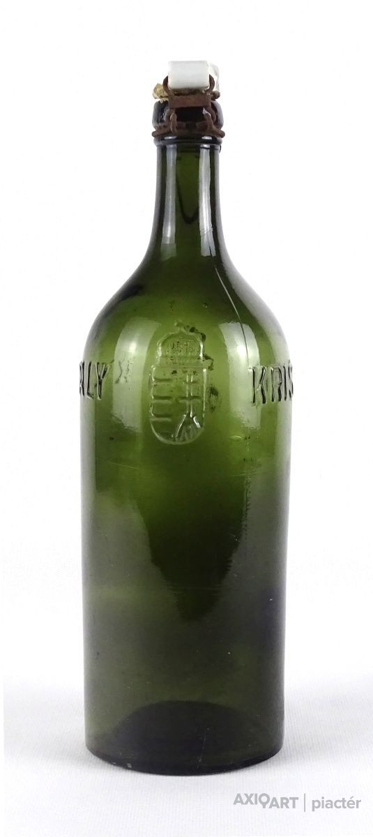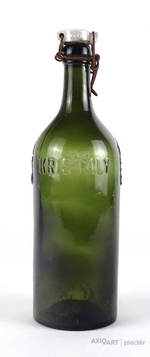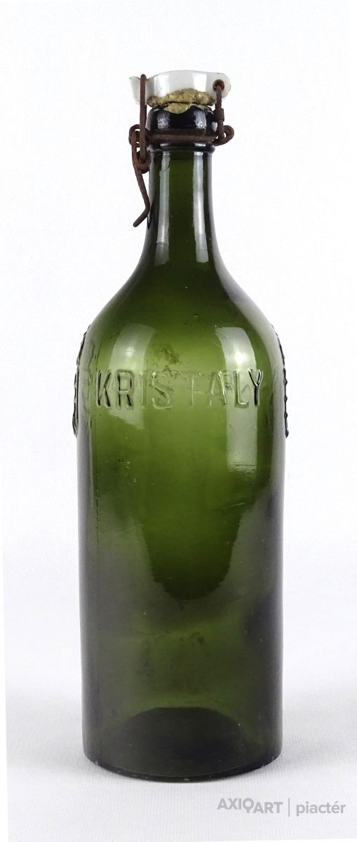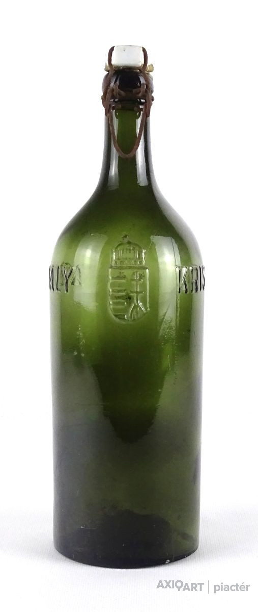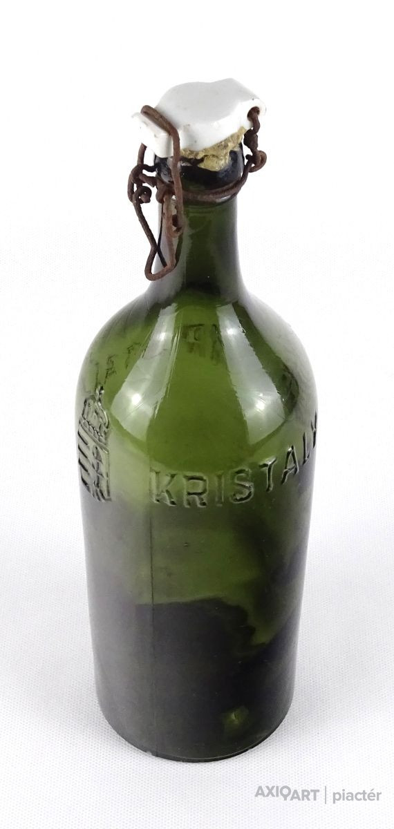 [1M281/X154] Nagyon régi, méregzöld színű kristályvizes üveg palack. Oldalán magyar plasztikus címer és felirat: KRISTÁLY Magasság: 29.5 cm Szélesség: 9 cm Súly: 0.675 kg