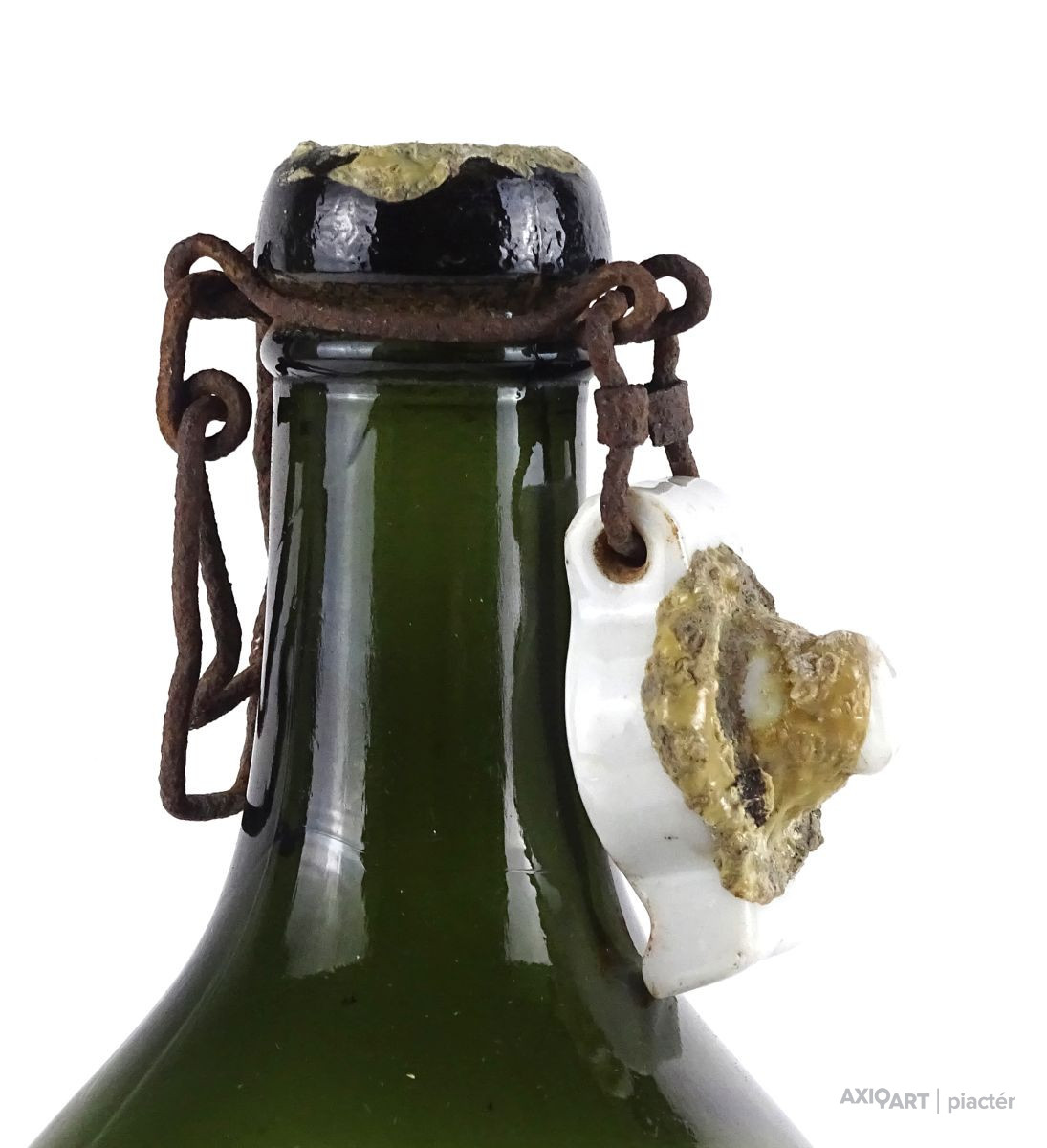 Nagyon régi, méregzöld színű kristályvizes üveg palack.