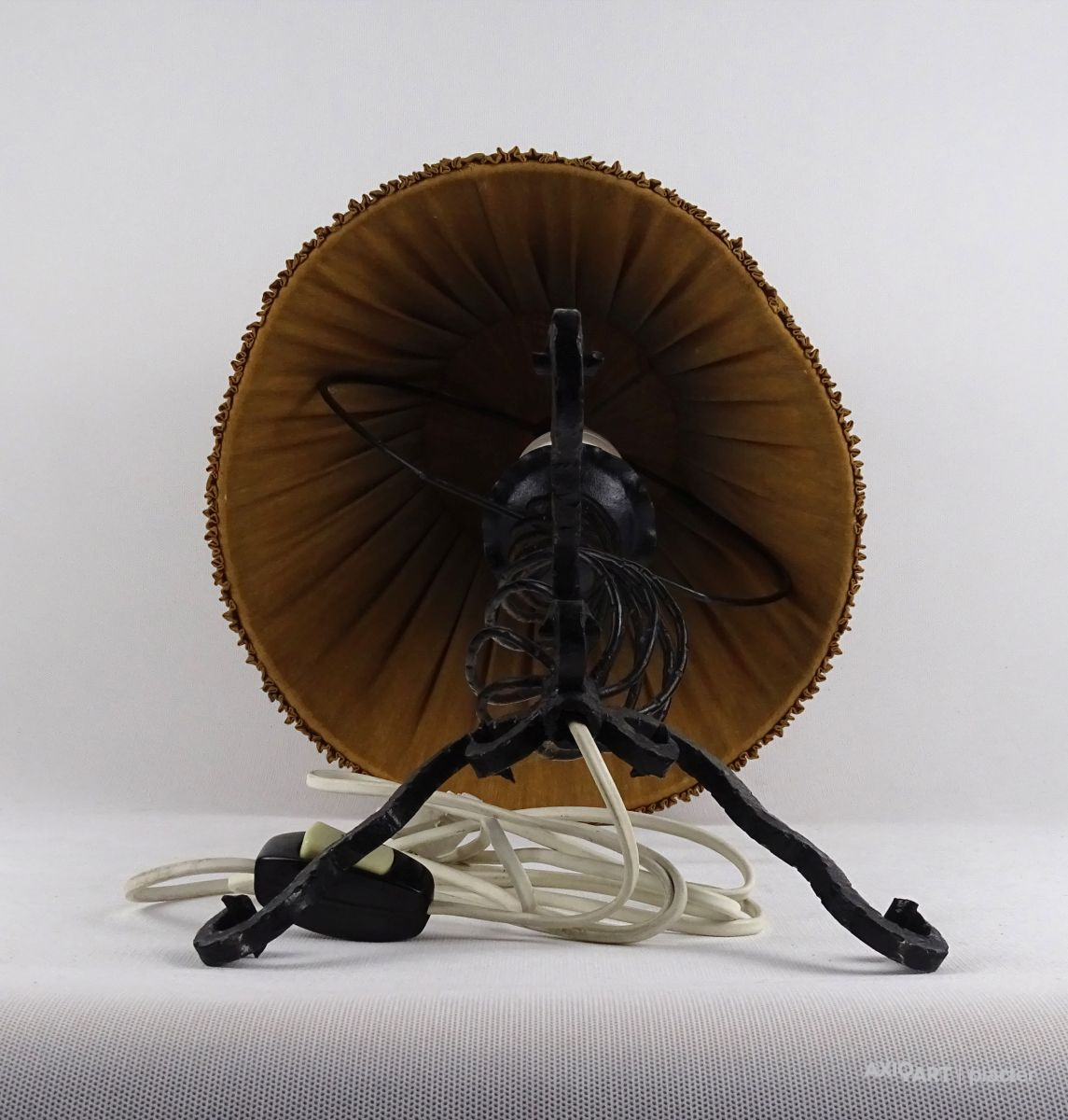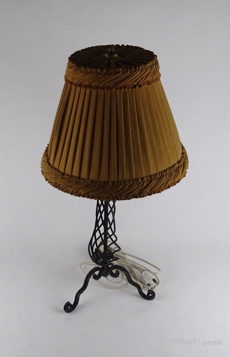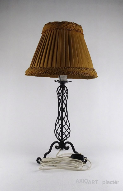 [1T049/X023] Régi, csavart testű, kovácsoltvas asztali lámpa, éjjeli lámpa működő állapotban. Nagyméretű (E27-es) izzó való bele. Magasság: 60 cm Szélesség: 30 cm Súly: 1.37 kg