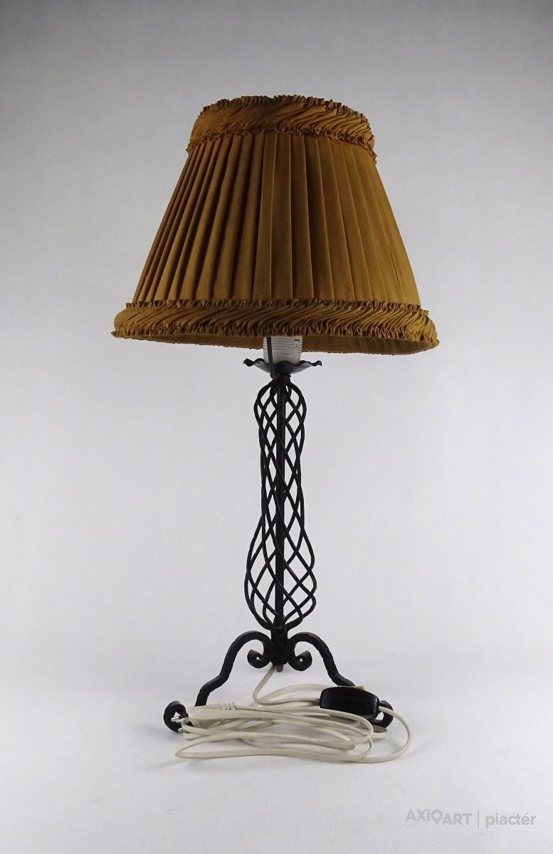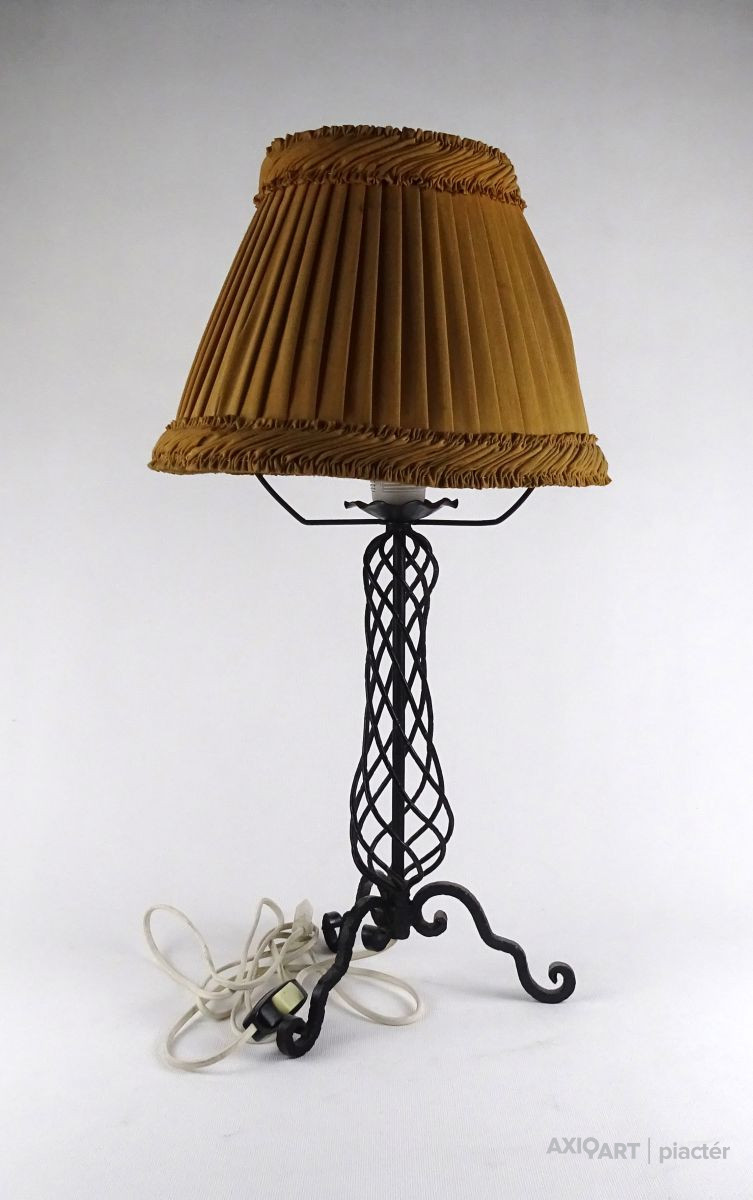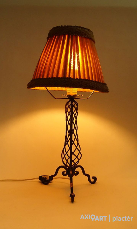 Régi, csavart testű, kovácsoltvas asztali lámpa, éjjeli lámpa működő állapotban. Nagyméretű (E27-es) izzó való bele.