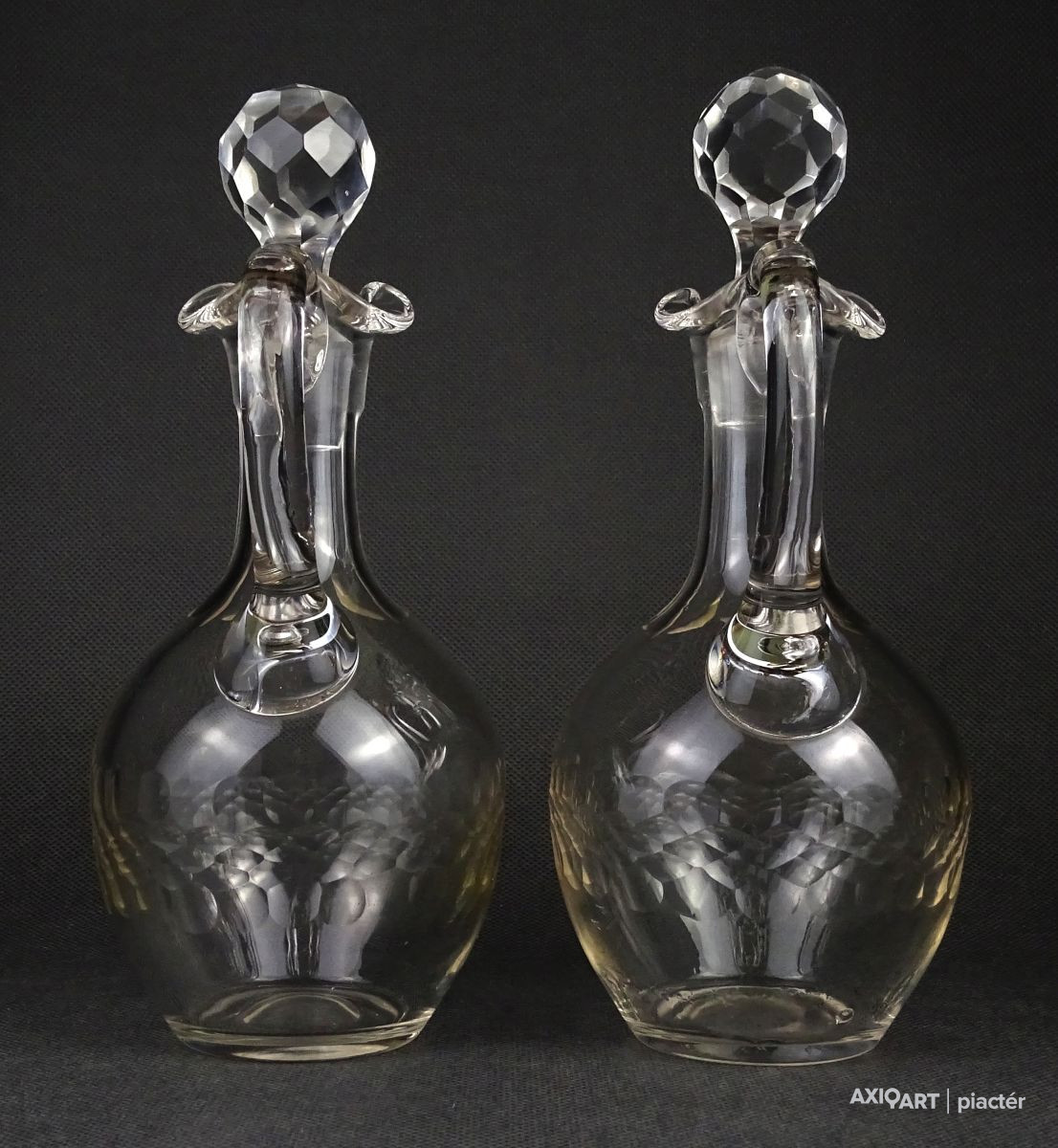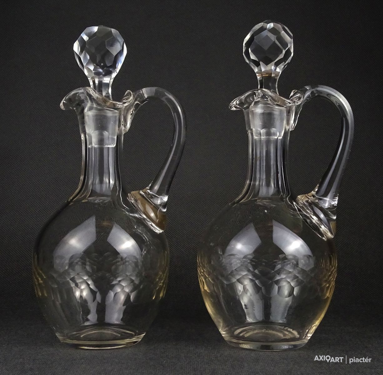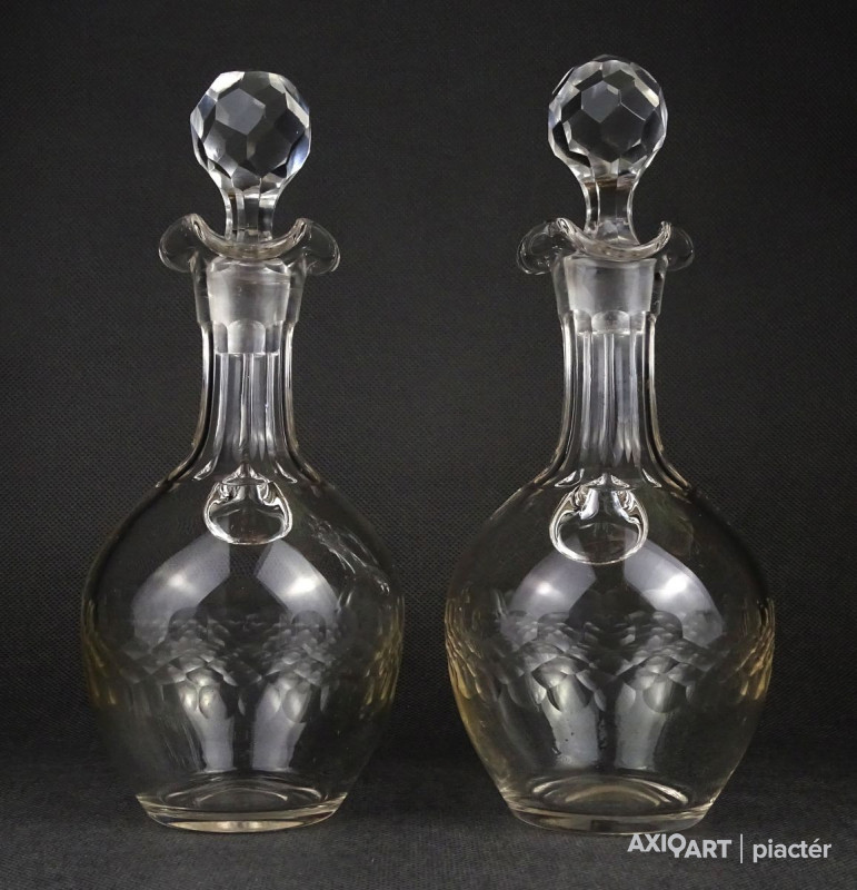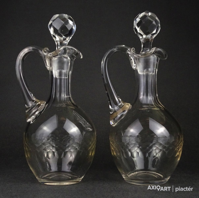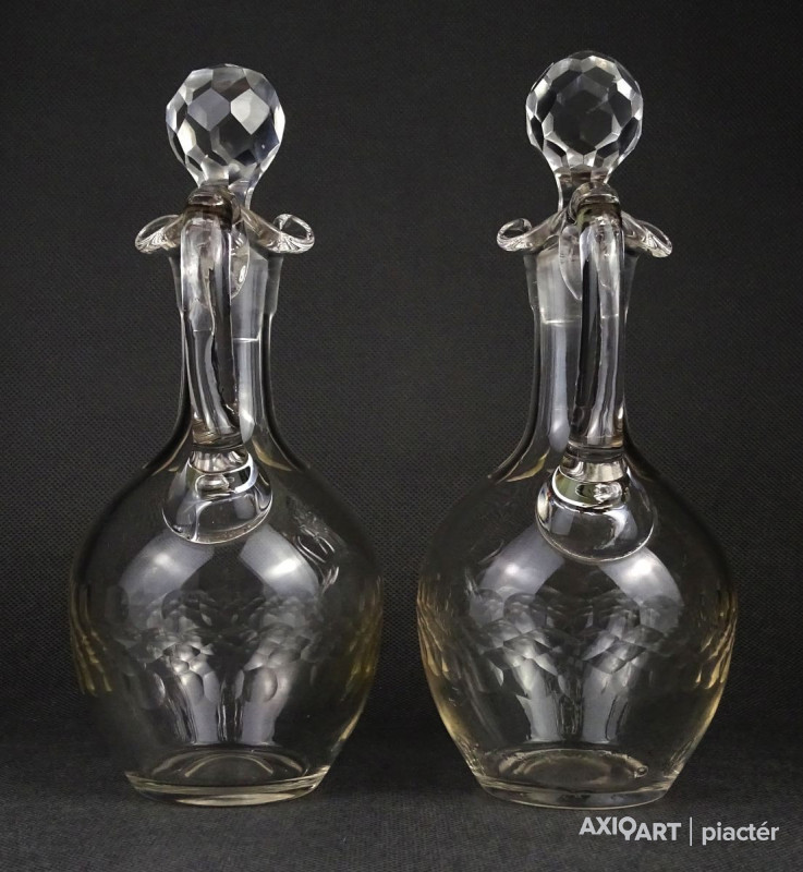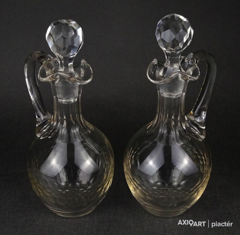 Régi csiszolt olajos ecetes üveg kiöntő pár 22 cm