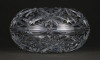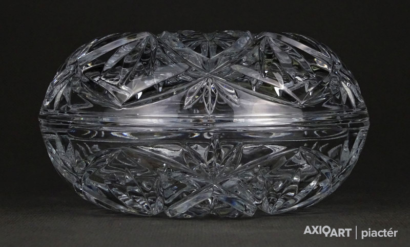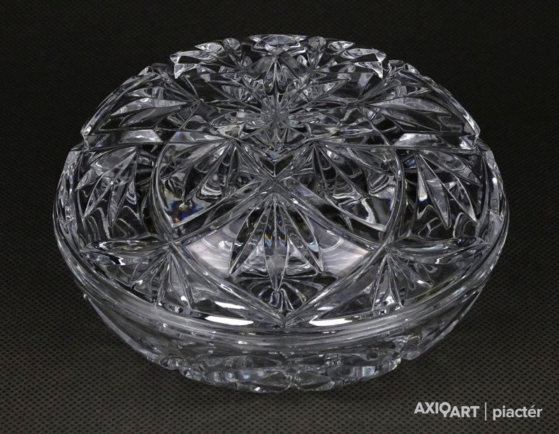 [1P341/X203] Régi, szép állapotú üveg cukortartó, cukorkínáló vagy gyűrűtartó, ékszertartó bonbonier. Magasság: 6.3 cm Szélesség: 12 cm Súly: 0.535 kg