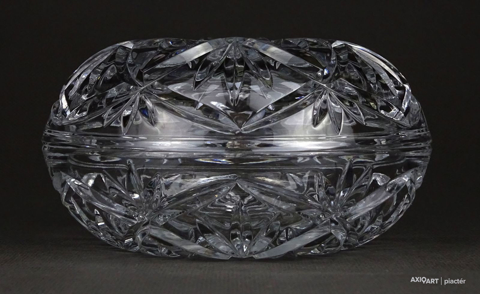 Régi, szép állapotú üveg cukortartó, cukorkínáló vagy gyűrűtartó, ékszertartó bonbonier.