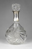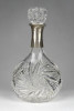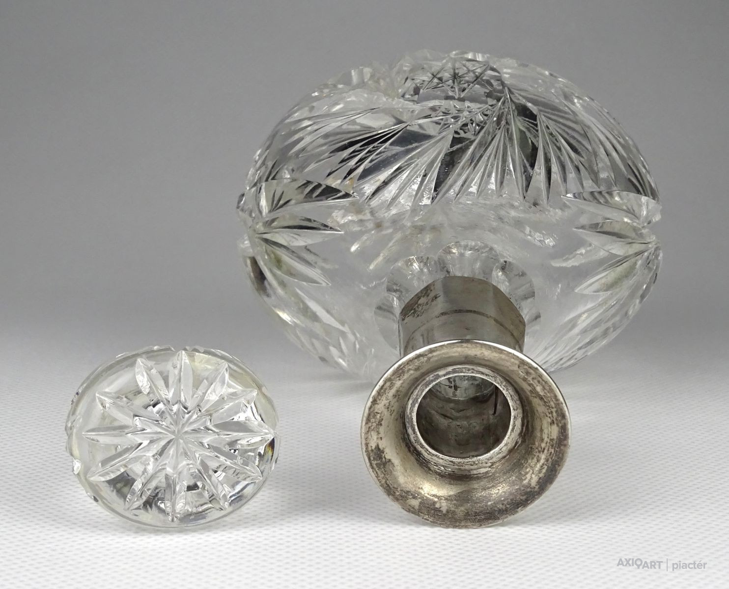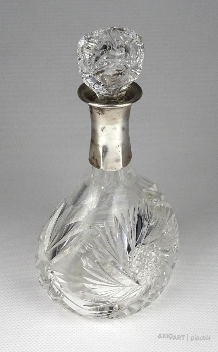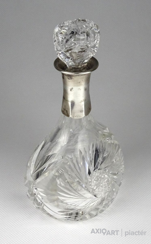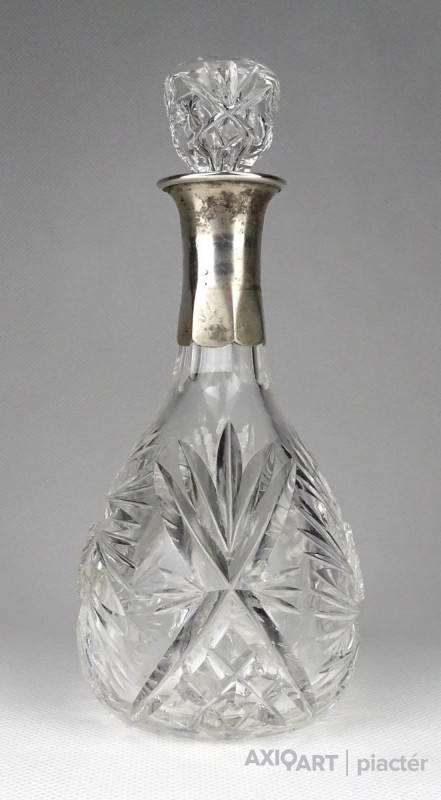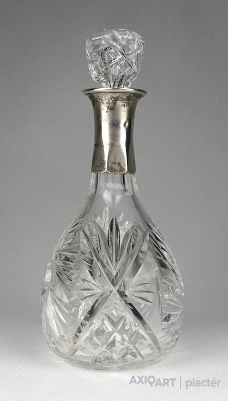 Régi csiszoltüveg likőrös üveg ezüstözött nyakkal 17 cm