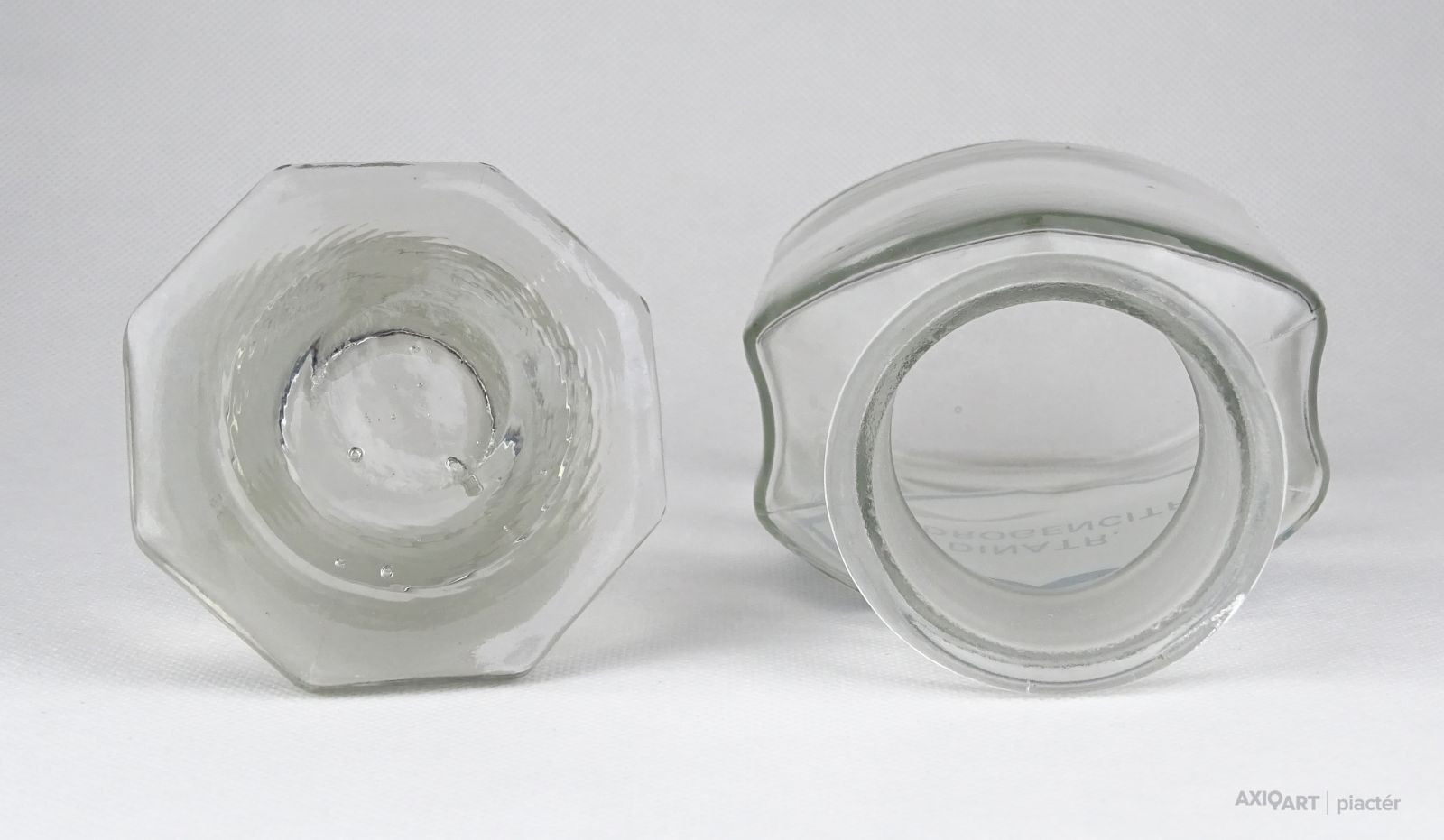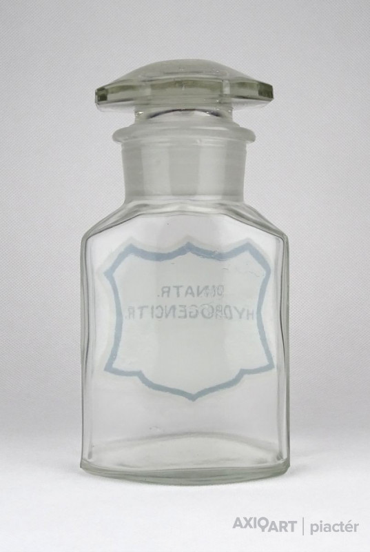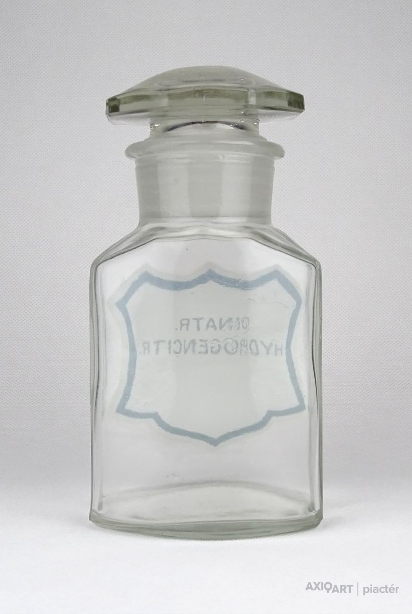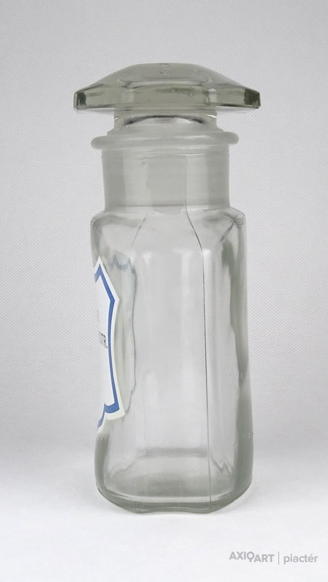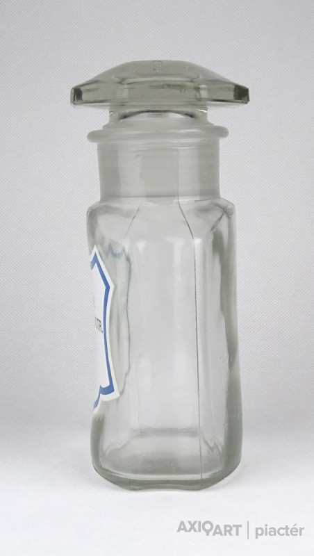 Régi, szép állapotú, áttetsző patika üveg, gyógyszerészeti tároló üveg.