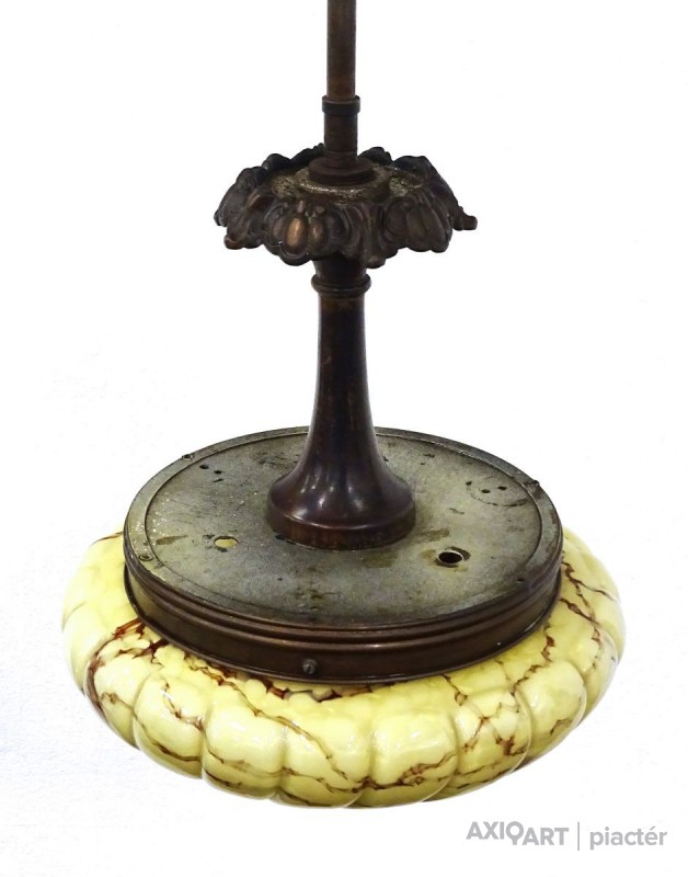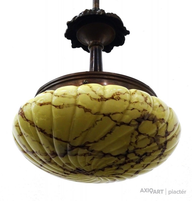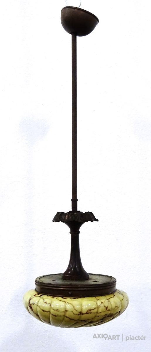 Egyégős, régi mennyezeti függeszték csillár, szép állapotú gyönyörű sárgás színű, márvány mintás búrával.