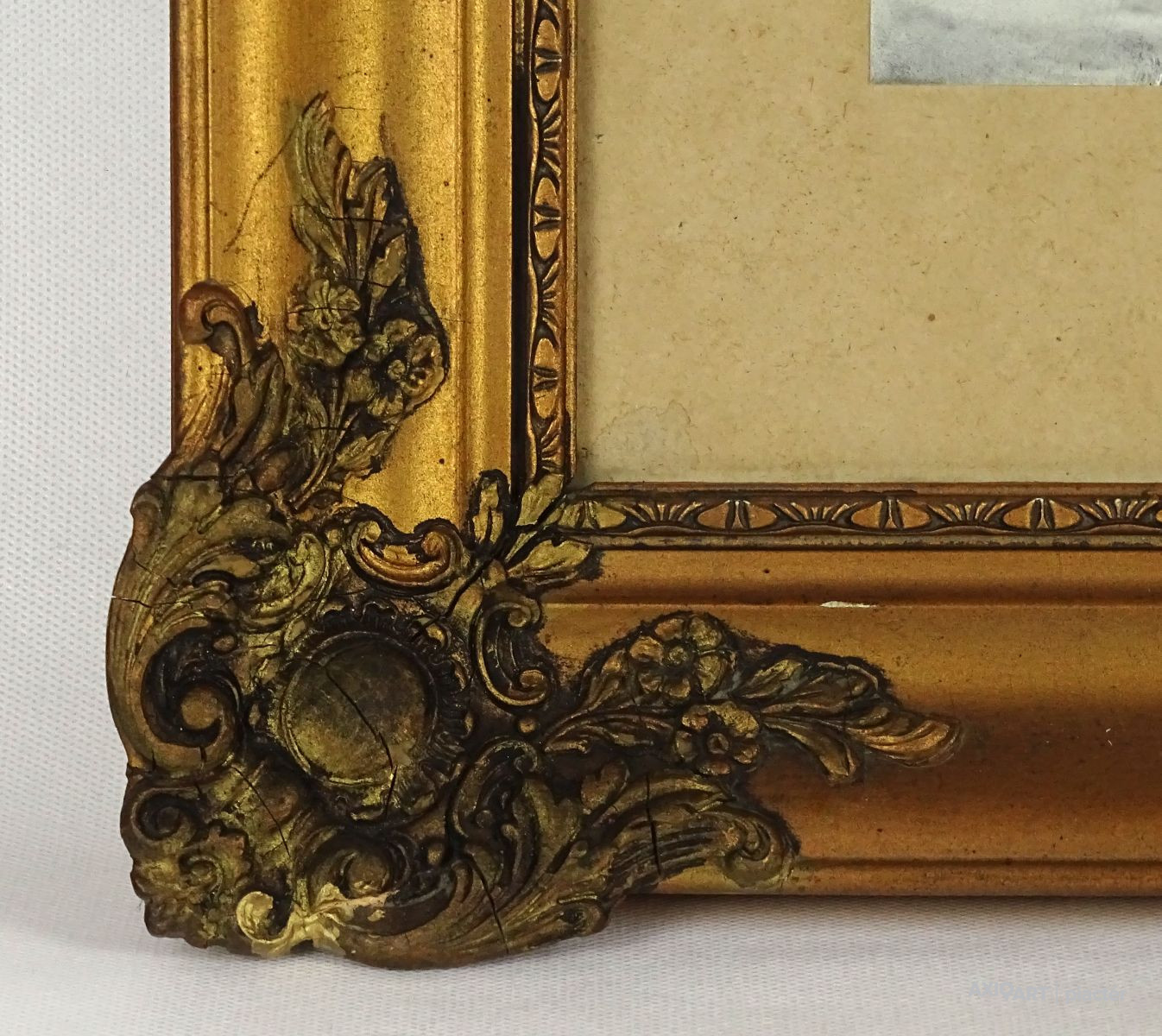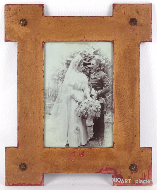 Régi aranyozott Blondel keretben, üveglap mögött található régi esküvői fotográfia. Akasztási lehetőséggel rendelkezik.