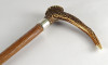 Régi szögegyenes agancsfejes ágbot, sétabot, túrabot, jelzett ezüst fejjel. Az agancs markolatban ezüst monogram található: K.J.