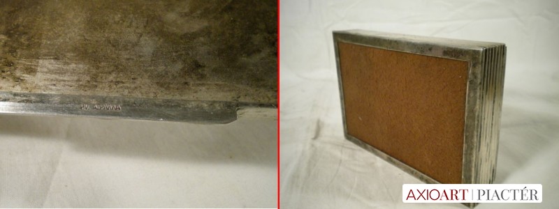 A doboz mintázata az ezüsthöz hasonlatos, szép kígyóbőr szerű kézimunka.