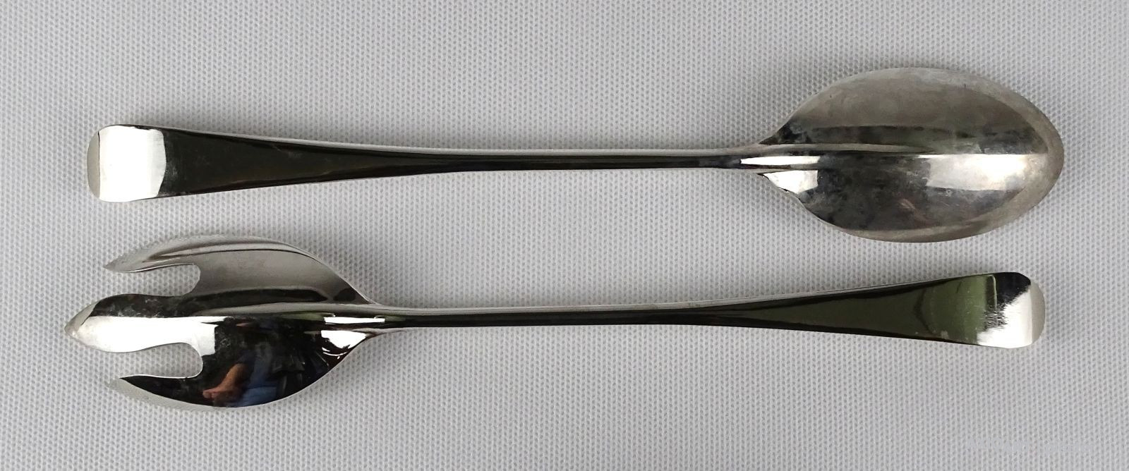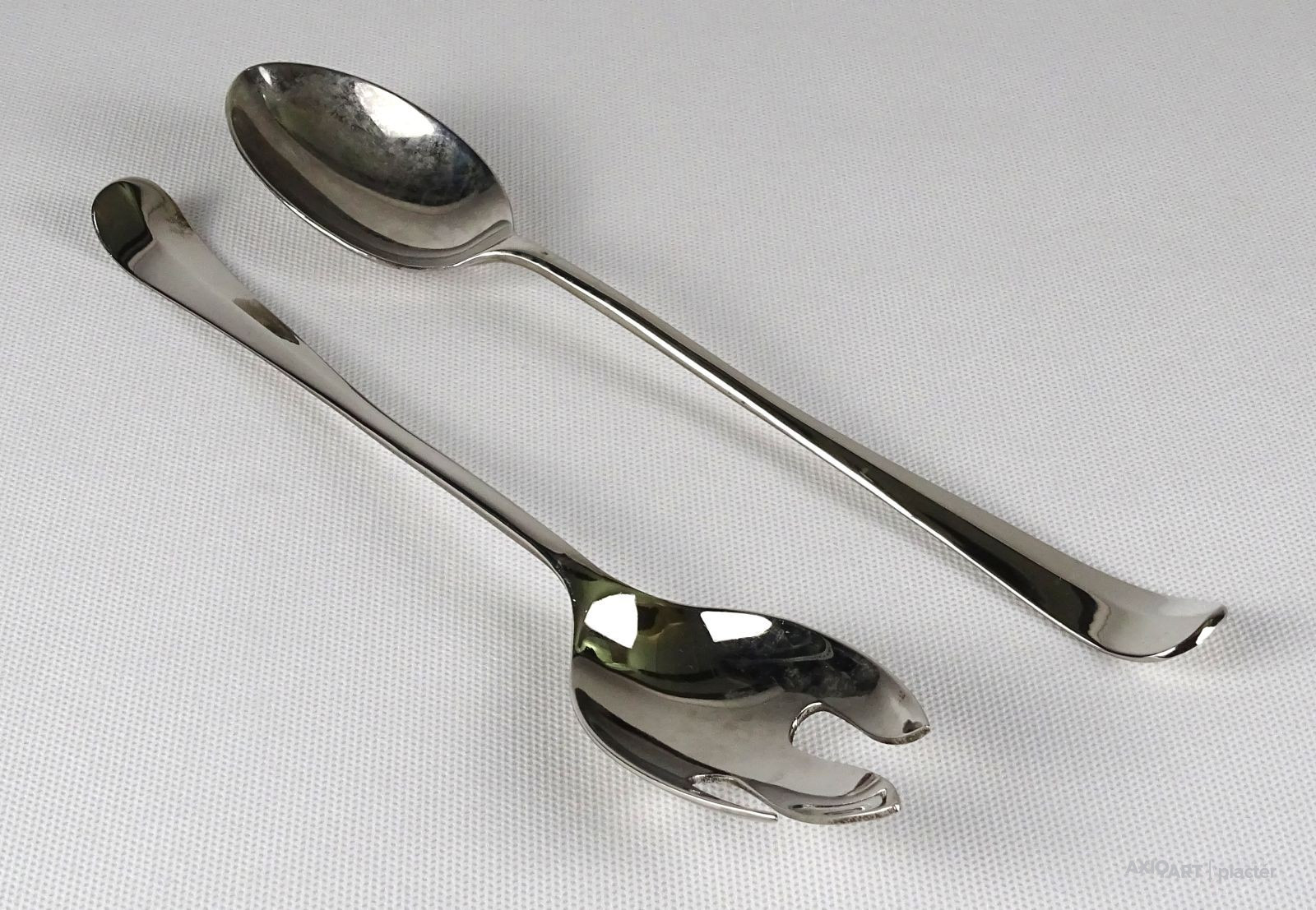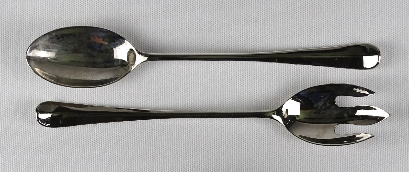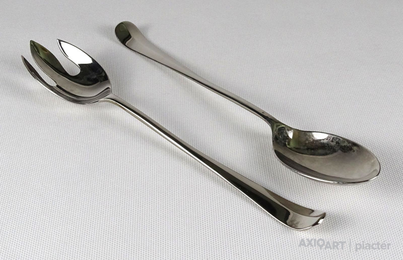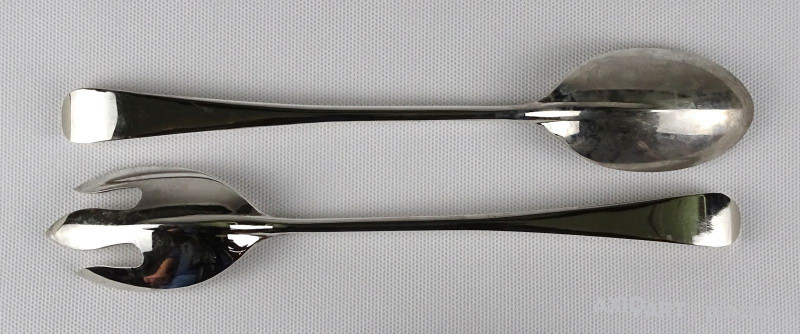 [1L522/X074] Régi, szép állapotú, hosszú nyelű salátás szedő kanál pár. Hosszúság: 25 cm Súly: 0.125 kg