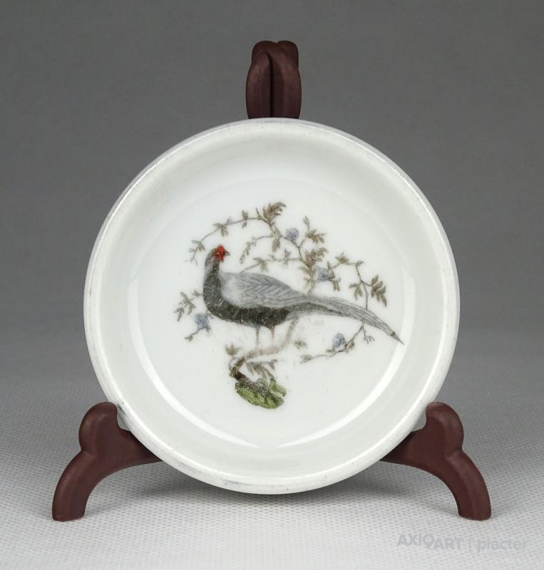[1H414/X242] Szép állapotú, kis méretű porcelán tányér, hamutál. Közepén fácán díszítéssel. Alján zöld színű koronás márkajelzés: ROSENTHAL BAVARIA Szélesség: 7 cm Súly: 0.04 kg