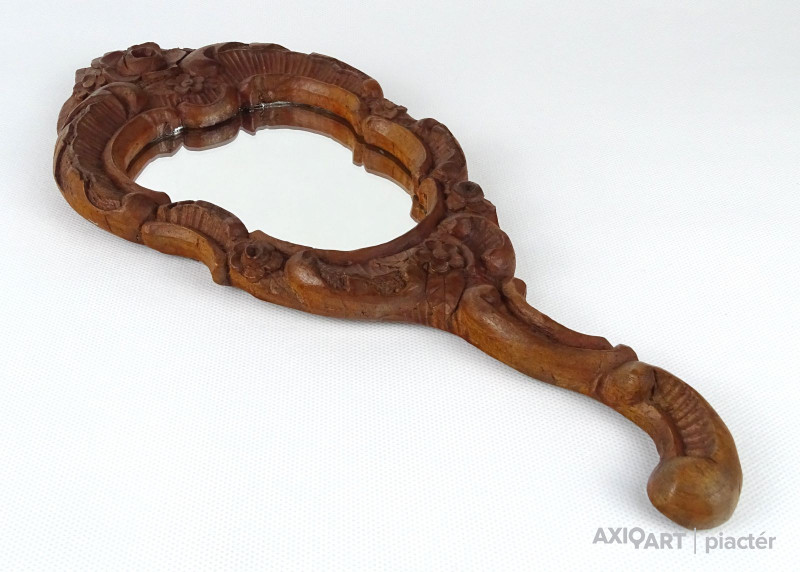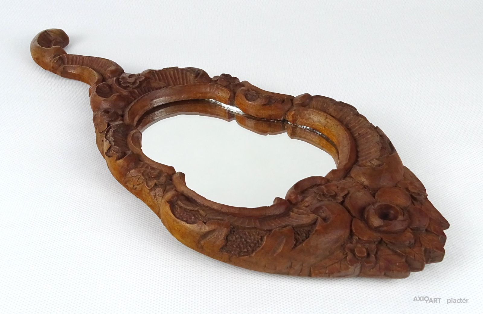 Régi faragott pipere tükör kézi tükör 33.5 cm