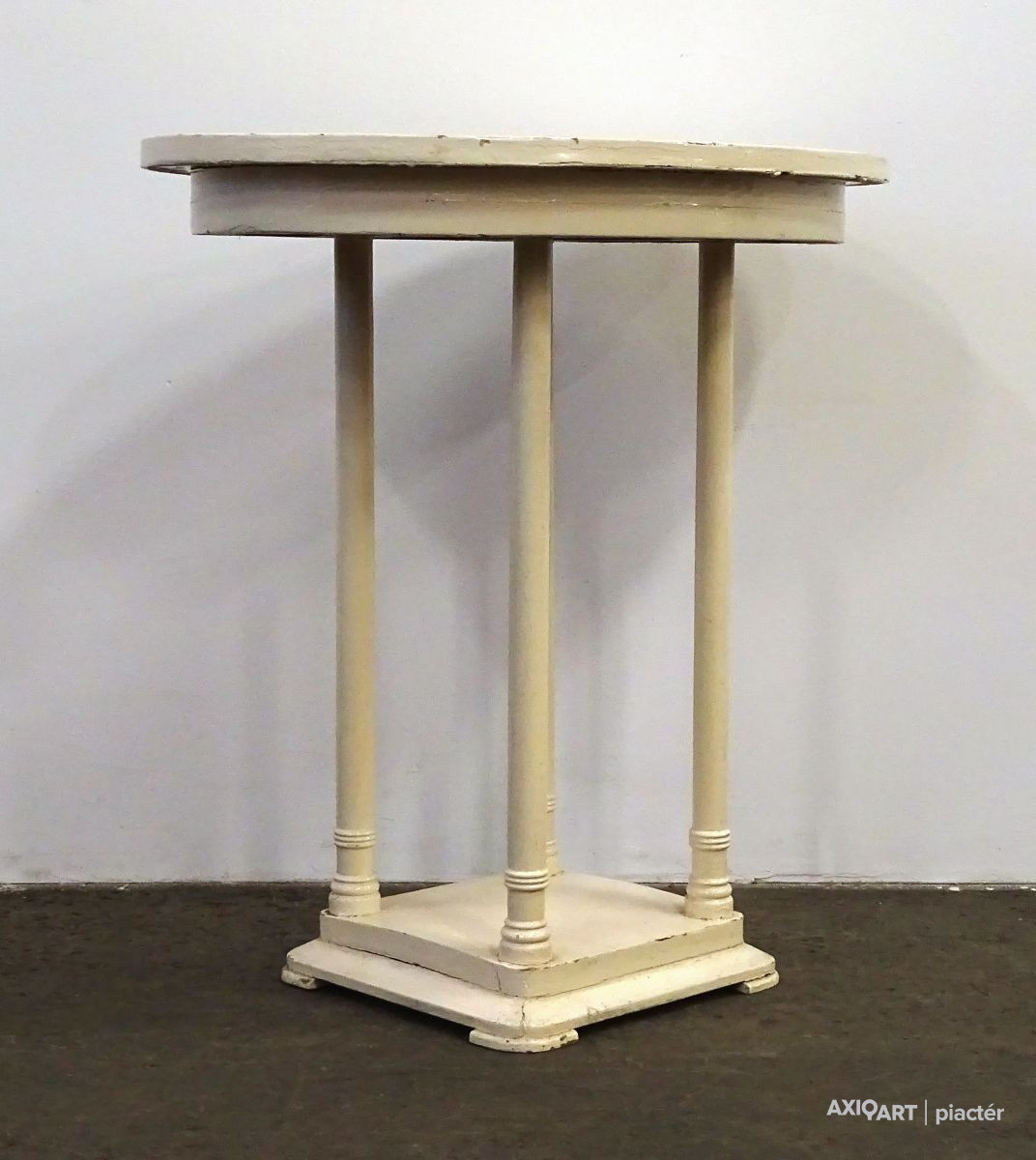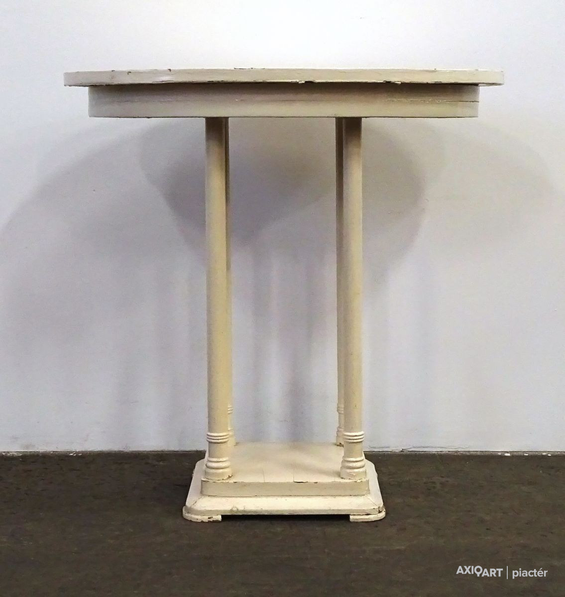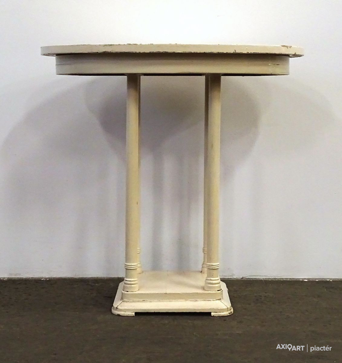 Szép állapotú, régi fenyőfából készült fehérre festett, stabil kis asztal. Ovális alakú szecessziós szalonasztal, lerakó asztal.