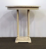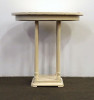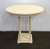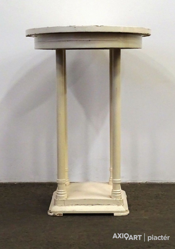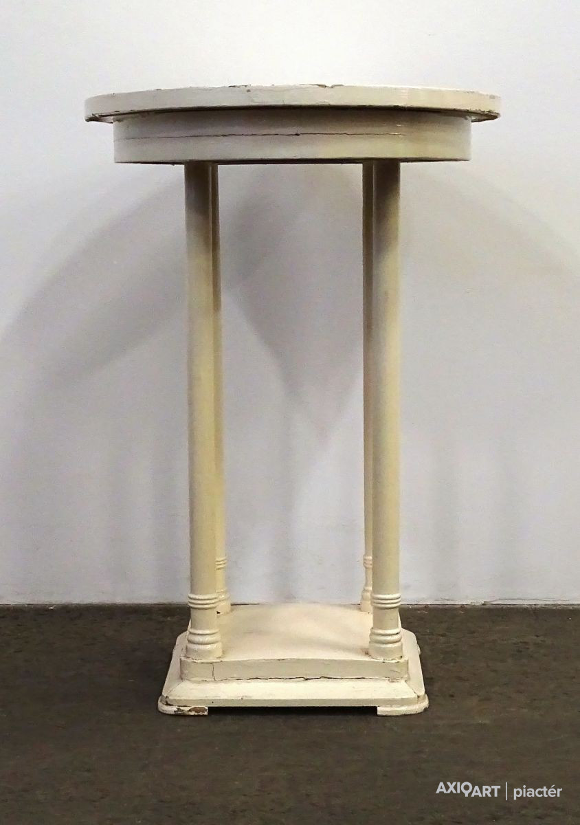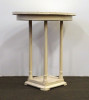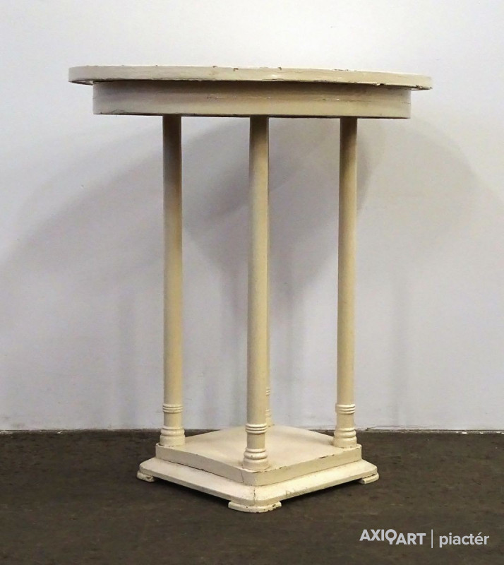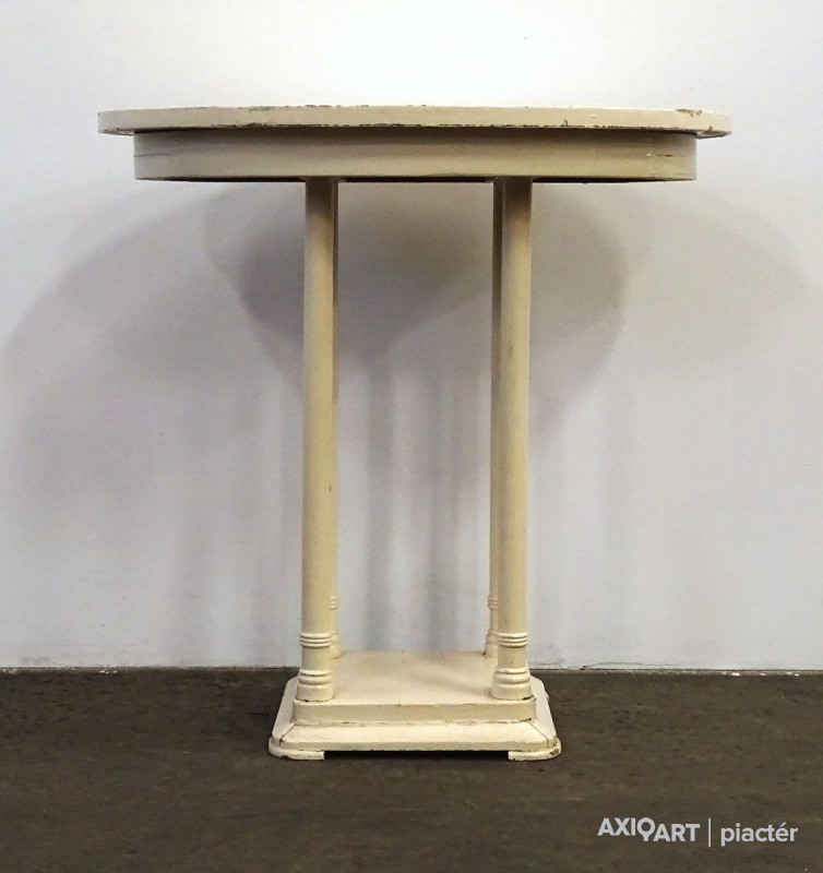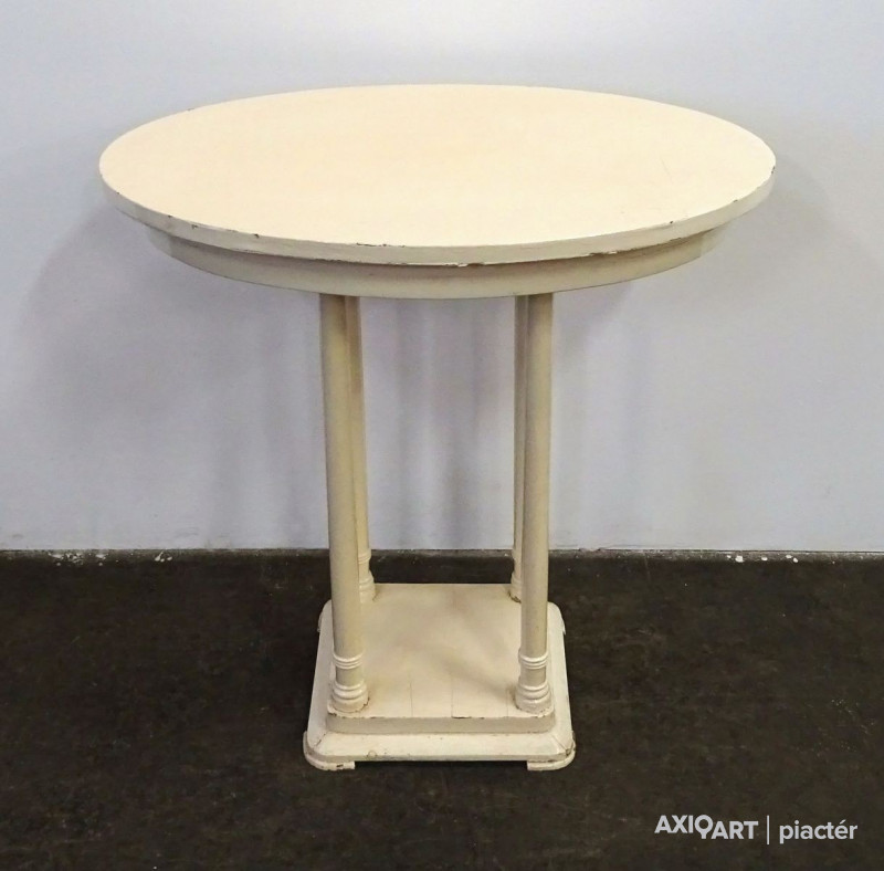 Szép állapotú, régi fenyőfából készült fehérre festett, stabil kis asztal. Ovális alakú szecessziós szalonasztal, lerakó asztal.