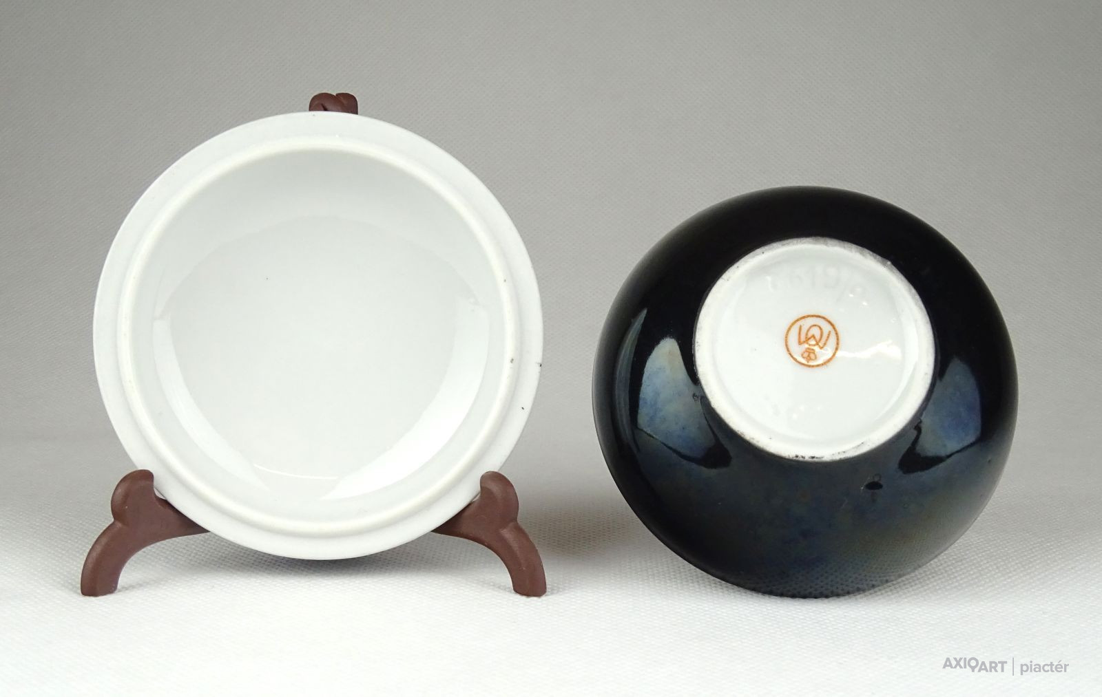 Régi fekete Metzler & Ortloff porcelán bonbonier 8 cm