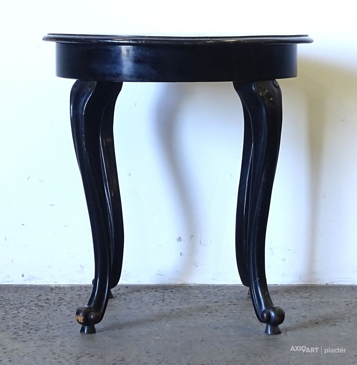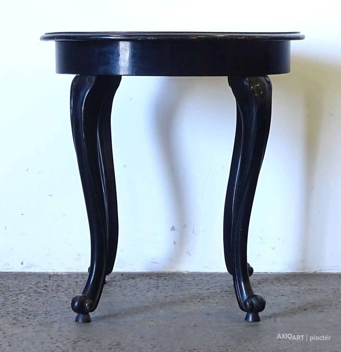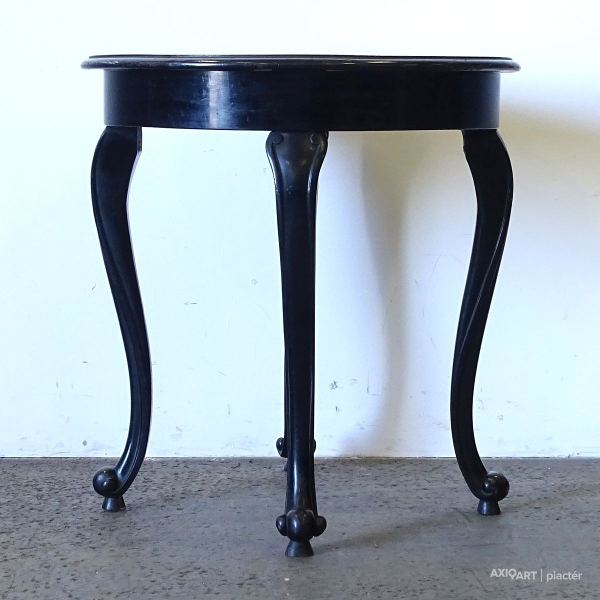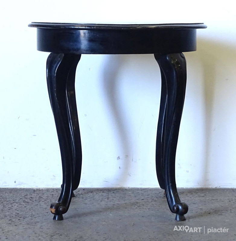 [1Q153/KCS] Régi, szép állapotú fekete színű szalonasztal, körasztal. Magasság: 78 cm Szélesség: 73 cm