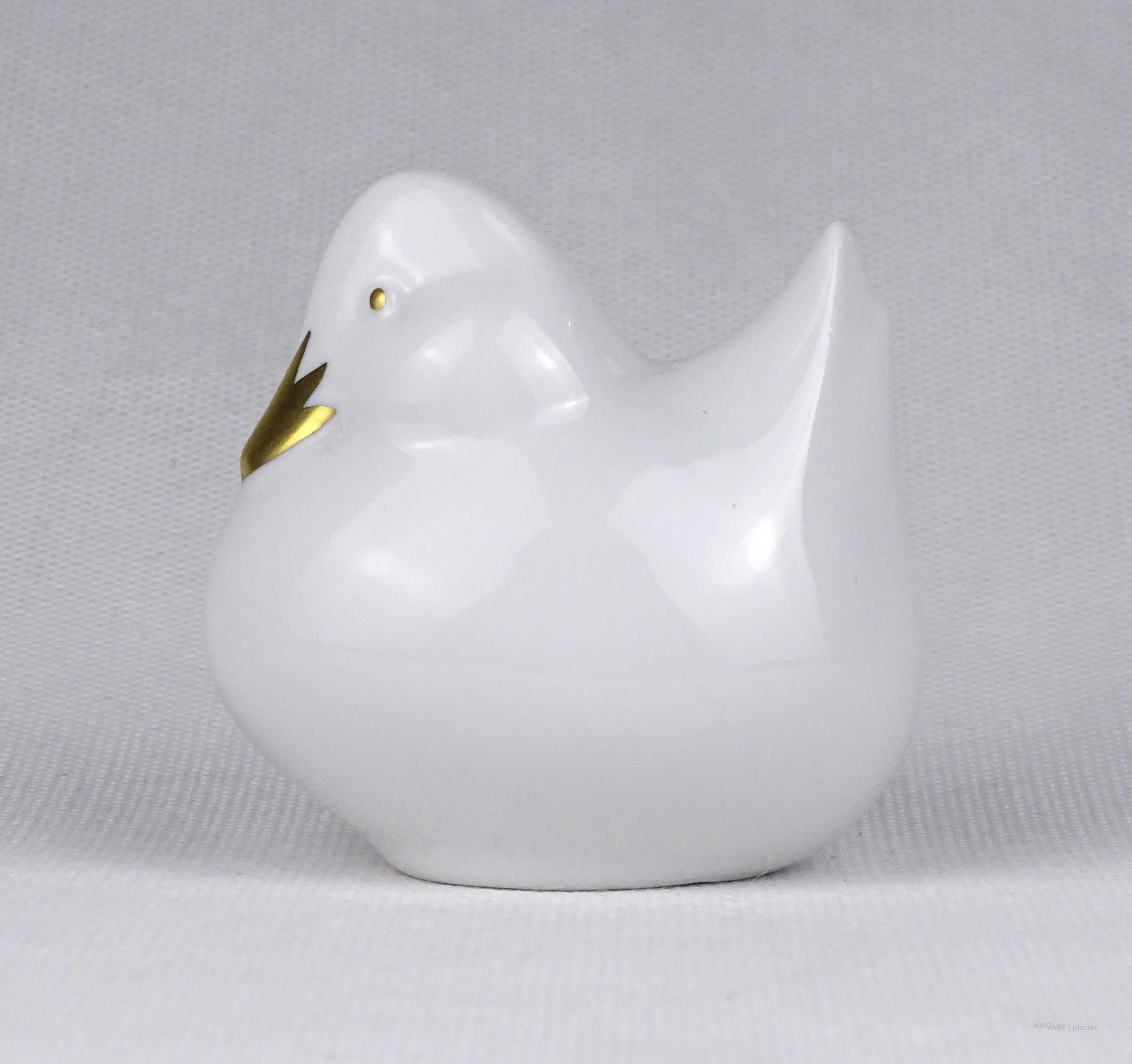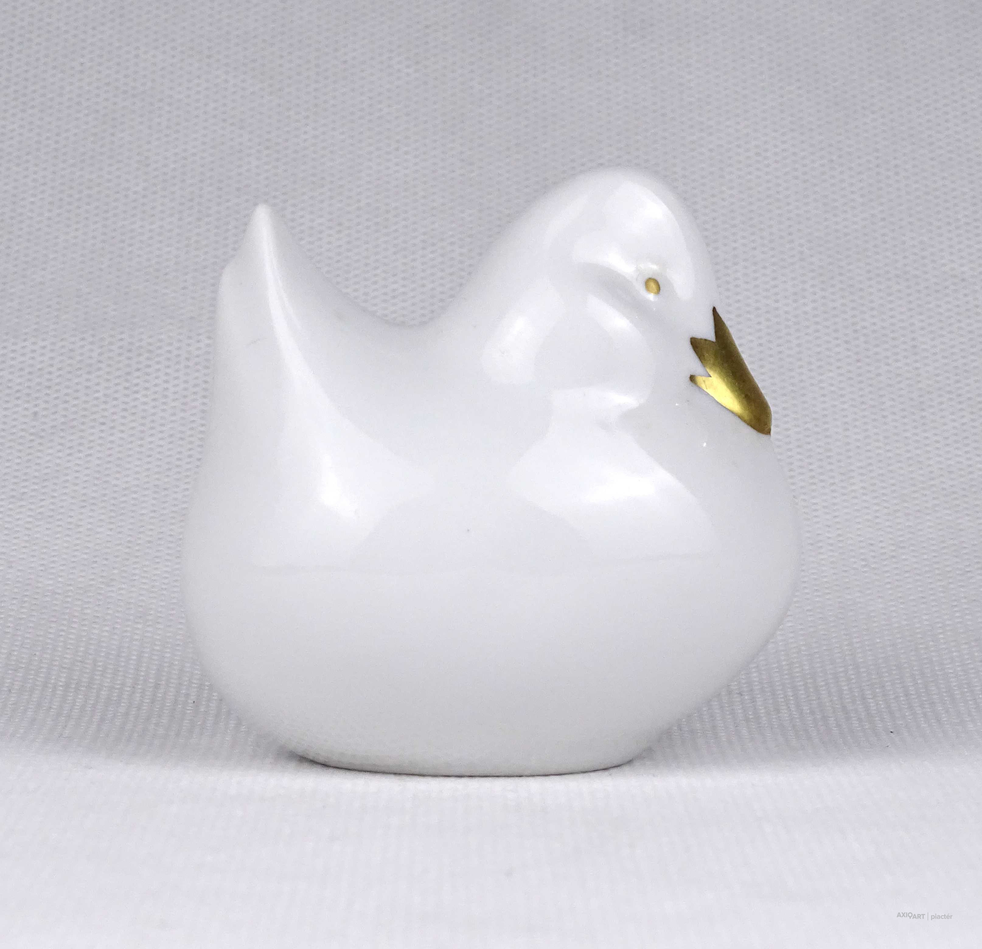 [1U322/Z265] Hibátlan állapotú, jelzett, festetlen, aranyozott csőrű Hollóházi porcelán vadkacsa. Alján kék hollóházi márkajelzés: HOLLÓHÁZA HUNGARY 1831 Magasság: 6.4 cm Szélesség: 4.8 cm Hosszúság: 6.3 cm Súly: 0.06 kg