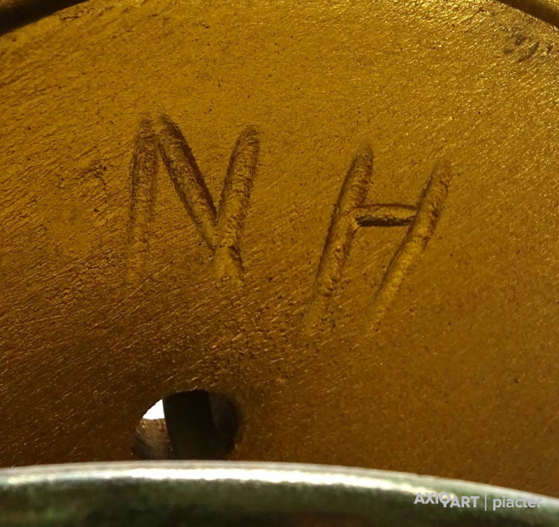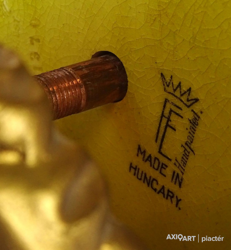 [1L997/UZ-N] Hibátlan állapotú, áttört Fischer majolika lámpa. Faragott aranyozott fa talpon áll. Rajta szép állapotú bura. Működőképes, újravezetékelt, azonnal használható állapotban van. Kettő darab nagy méretű (E27) izzó való bele. Alján koronás jelzés: FE MADE IN HUNGARY HANDPAINTED Fa talpon karcolt, vésett jelzés: HN Magasság: 51 cm Szélesség: 31 cm Súly: 2.31 kg