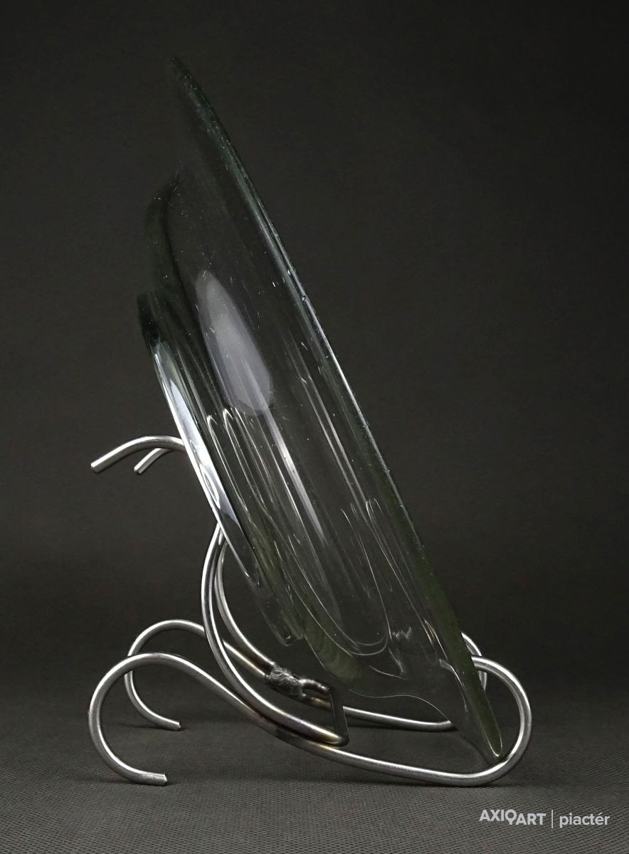 [1O212/Z046] Hibátlan állapotú, színezett fúvott üveg váza, talpas üveg váza vagy üveg kupa. Skandináv design üveg. Talpán a fúvás szakítás nyoma szépen kivehető. Magasság: 14 cm Szélesség: 6.5 cm Súly: 0.215 kg Erik Höglund  Ugrás a navigációhozUgrás a kereséshez A papról (1902–1971) lásd Erik Höglund (pap) . Erik Höglund Született 1932. január 31. Karlskrona , Blekinge megye Halál 1998. január 27. (65 éves) Maria Magdalena plébánia , Stockholm Állampolgárság svéd Foglalkozás/megbízás Tervező, művész Ismert Tervezés Koszta Boda számára Feleség Maerit Levin (sz. 1953–1967; elvált) Ingrid Höglund (sz. 1974–1998; halála) Partner Monica Backström (partner 1968-1972) Rokonok Anna Höglund (lánya) Erika Höglund (lánya) Albin Höglund (fia)  Erik Sylvester Höglund , 1932. január 31-én született Karlskronában , 1998. január 27-én halt meg a stockholmi Maria Magdalena plébánián , svéd szobrász , festő , grafikus és üvegművész . Életrajz  Erik Höglund Torsten Höglund és Jenny Jonsson könyvelő fia, valamint Tore Enar Höglund szobrász és grafikus öccse volt . Tanulmányait a stockholmi Konstfackban végezte , először dekorfestészetet Fritz Sjöströmnek , majd szobrászatot Robert Nilssonnak , végül 1951–1952-ben Harald Sallbergnek grafikát . Erik Rosén , a Boda Üveggyár 1953 és 1973 között dolgozó tervezője fogadta be , és ez idő alatt jött el, hogy átalakítsa a svéd műüveggyártást az üvegtermékek kinézetére vonatkozó új ötletek bevezetésével. Ösztöndíja többek között metszetekkel kapcsolatban, a színek és a földes, aszimmetrikus dizájn sikeres lett a külpiacon. Bodán töltött ideje alatt fenyővel, vasalással és bútorokkal is foglalkozott. Később más üveggyárakkal is együttműködött, például a Pukeberggel , a Lindshammarral és a Studioglas Strömbergshyttannal . 1968-ban Monica Backström üvegművésszel megalapította a Backström & Höglund Design AB formatervező céget, amely bútorok, háztartási eszközök és használati tárgyak tervezésével foglalkozik. Höglund tagja volt a Vet Hut AB-nek is, amelyet 1971-ben alapított a Boda glasbruk tíz tervezője szokásos munkájuk mellett: Erik Höglund, Monica Backström, Ann Wolff , Göran Wärff , Bertil Vallien , Ulrica Hydman-Vallien , Per Arne. Lundahl, Liselotte Jörgensdotter, Gunhild Sinnemark és Rolf Sinnemark . Erik Höglund szobrászként számos köztéri dekorációt készített különféle anyagokból, köztük téglából és betonból. Ezt követően gyakran dolgozott együtt olyan építészekkel, mint Jon Höjer a Höjer & Ljungqvistnél , Bengt Gate és Lars Ågren .  Kiállítás  A stockholmi Palmcrantzska gyárban korábban Ulf G. Lindén állandó kiállítása volt Erik Höglund alkotásaival. Ezt a gyűjteményt 2009 szeptemberében a karlskronai Blekinge Múzeumnak adományozták.  Közművek válogatásban  Két állat és egy játék (1966), gránit, Bredängs Torg Stockholmban. Fiskargumman a karlskronai halpiacon. Négyzet alakú oszlop Gävle-ben Erik Höglund mintegy 150 köztéri dekorációt készített üvegből, bronzból, kovácsolásból, téglából, gránitból és betonból. Kerékpárosok I (1956), bronz, a trelleborgi oktatási intézmény Kerékpárosok II (1957), bronz, a karlskogai oktatási intézmény Kerékpárosok III (1957), bronz, stockholmi Hökarängens iskola Az élő szó (1958), festmény a nybrói városi könyvtárban Kerékpárosok IV (1958), bronz, Handverkstorget Sandvikenben Kerékpárosok V (1959), Sjöboskolan, Borås Falfestmény üvegablak (1962) a borgholmi templomban Kristallglasskogen (1964), üvegmozaik fal, Ellagårdsskolan Täby községben A tudás fája (1966), vasműves és üveg, Folkets Hus Nybroban Állatszobrok (1964-67), gránit, Hallsberg Két állat és egy játék (1966), gránit, Bredängs torg Stockholmban Tó szökőkúttal (1967), gránit, Trelleborg Ülő terhes nő (1971), bronz, Haganässkolan Älmhultban Hajó halászokkal (1972), vas, üveg és fa, Hotel Witt Kalmarban Négyzet alakú oszlop (1971-74), beton, Stortorget Gävle -ben A súlyemelő (1974), bronz, az östersundi sportcsarnok Gyűrűk a vízen (1976-77), bronz, Rödeby Torg , Karlskrona önkormányzat Az élet játéka , tégladomborműves fal és régi érmék , üveg, mindkettő 1979–1980, Sparbanken Linköpingben Úszók (1980), kovácsoltvas, úszócsarnok Rödebyben , Karlskrona önkormányzat Cirkuszgömb (1980-81), kovácsoltvas, Kristianstad megyei tanács Fiskargumman (1981-82), bronz, halpiac Karlskronában Az olvasócsalád (1983), bronz és üveg, Kalmár Városi Könyvtár Életmentő (1985), réz, úszócsarnok Haganässkolanban Älmhultban Dans bort i vägen (1985), bronz, Torsås volt Anya és gyermeke , bronz, Trelleborg A büszke apa és Két ember , bronz, Eskadern lakónegyed Linköpingben Játssz szobrot téglából, Lönneberga óvoda, Norra Fäladen Lundban  Forrás: wikipédia