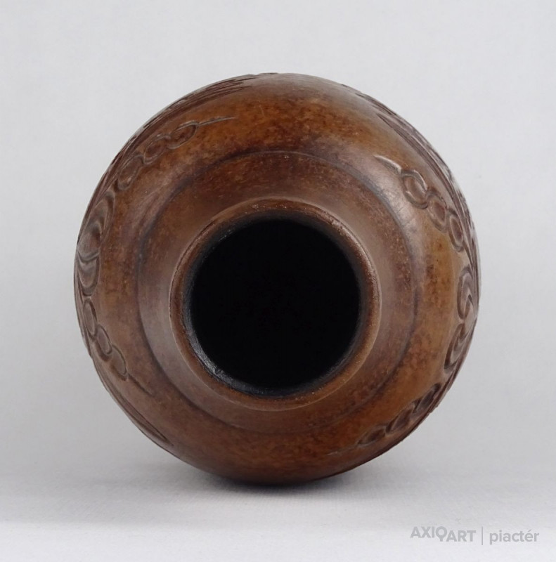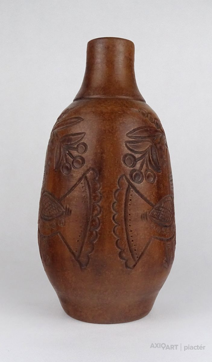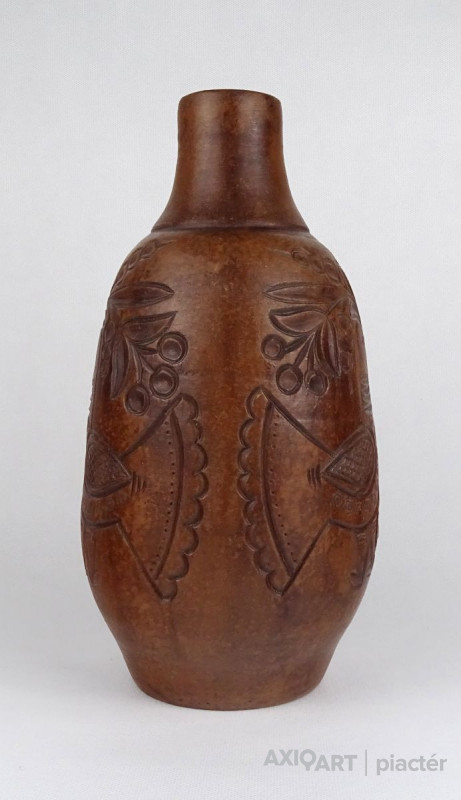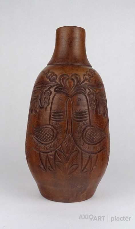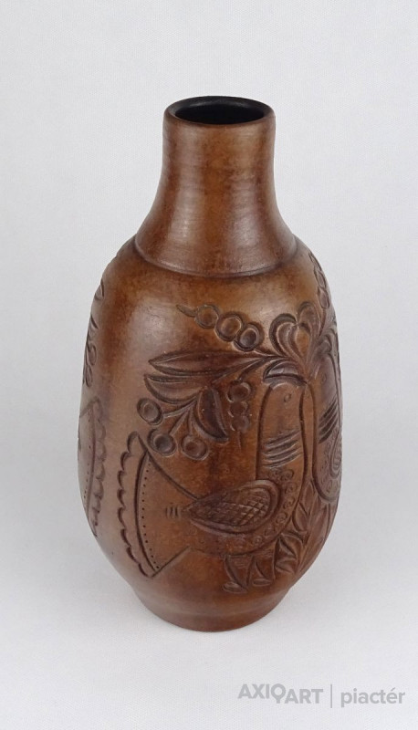 Régi, szép állapotú barna színű kerámia váza, díszváza, virágváza. Két oldalát galambpár díszíti.