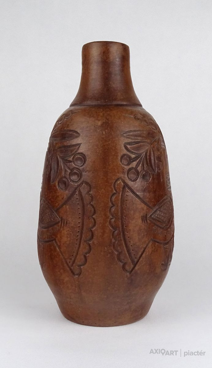 [1S672/X006] Régi, szép állapotú barna színű kerámia váza, díszváza, virágváza. Két oldalát galambpár díszíti. Magasság: 30.5 cm Szélesség: 15.5 cm Súly: 1.175 kg
